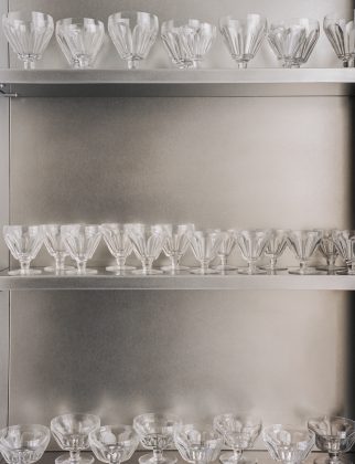 In keeping with the uniformity of shapes pursued, in the operational areas dedicated to the team, Martin Brûlé opted for wall unit blocks with open compartments, storage cabinets, and a desk, complete with a technical wall panelling, all in the same finish as the kitchen block. All elements were custom-made by Abimis, leveraging its expertise in stainless steel processing and its ability to meet any design requirement.