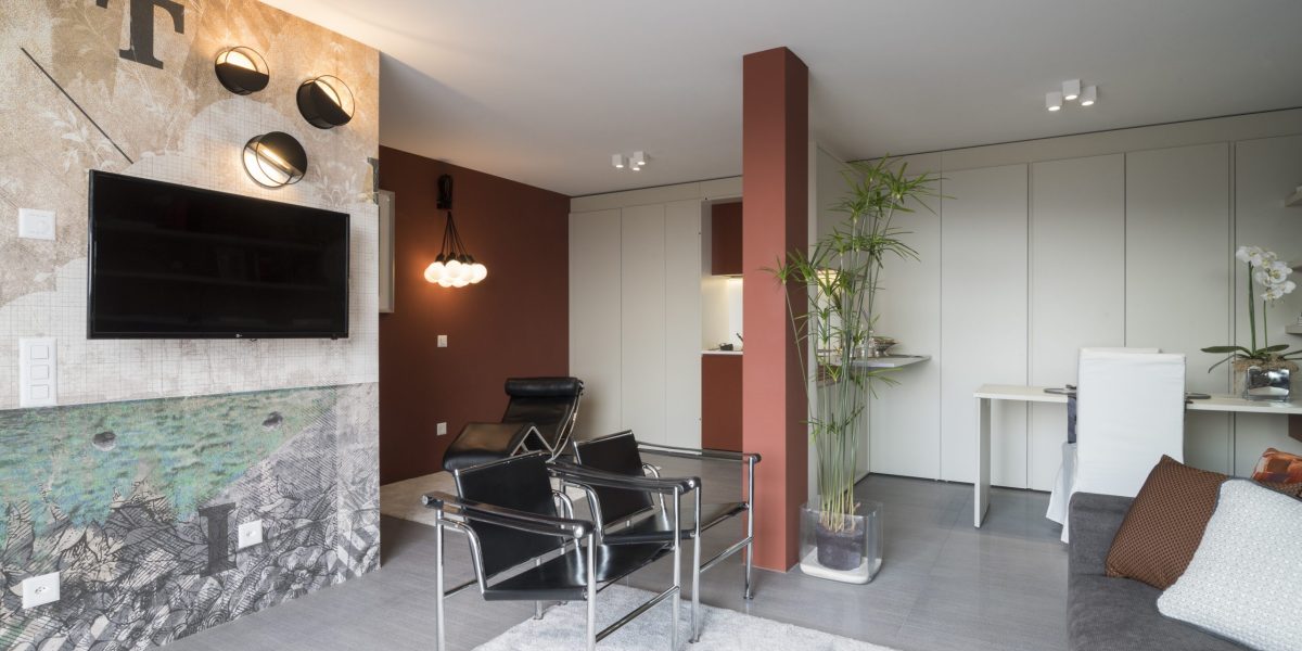 Nato dalla necessità di riconvertire un box auto in una dépendance per gli ospiti, il mini appartamento firmato da Andrea Castrignano è arredato con mobili che si trasformano in base alle diverse necessità del vivere quotidiano