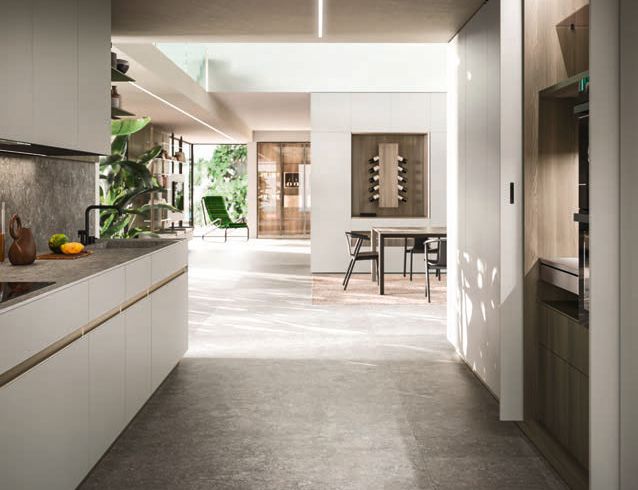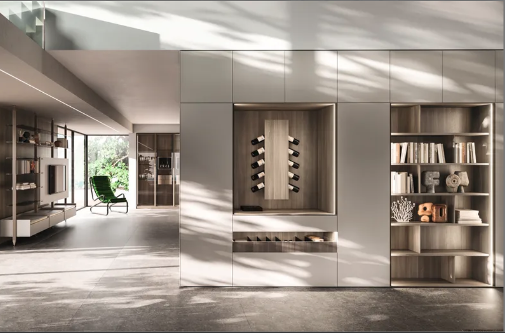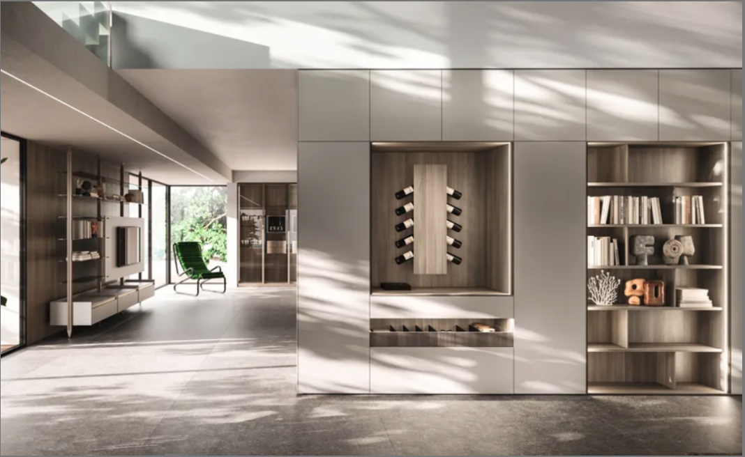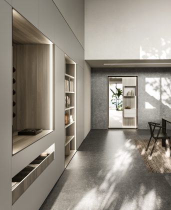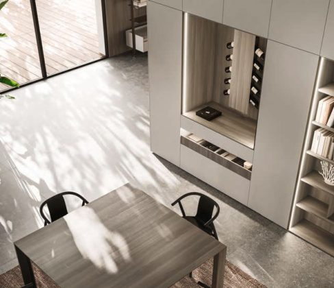 Pensato come accessorio esclusivo, Ak_Winery di Arrital è il nuovo espositore verticale per vini firmato dall'architetto Franco Driusso, art director di Arrital. Complemento d'arredo scenografico e funzionale che si integra nel sistema cucina Ak_Project, il nuovo espositore verticale assicura una corretta conservazione del vino grazie all'angolazione della sua struttura elegante. Un elemento decorativo e di design, quindi, capace di caratterizzare gli spazi living. In queste immagini, i moduli Ak_Winery e i moduli Libreria con schienale in finitura Maui si integrano ai moduli del sistema-parete Divider System, che dividono in maniera netta la zona cucina dall'area giorno.