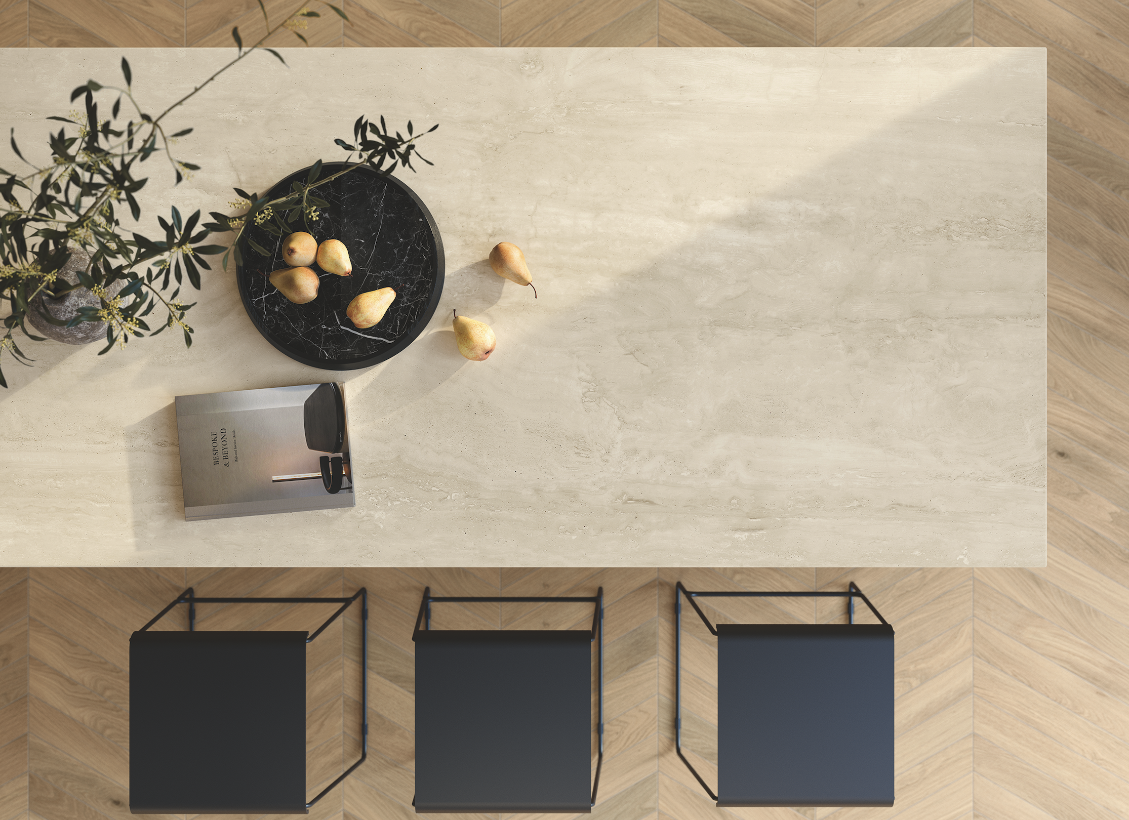 A questa ricercata valenza estetica si affiancano le performance del gres porcellanato, materiale ideale per la cucina grazie alla sua compattezza, resistenza e facilità di manutenzione: Travertino Navona White offre soluzioni in grado di rispondere alle esigenze quotidiane senza rinunciare all’estetica. Perfetto per residenze di alto livello e progetti contract, Travertino Navona White è ideale anche per spazi pubblici o commerciali che richiedono un impatto visivo forte e duraturo. Inoltre, la continuità materica delle grandi lastre favorisce una transizione fluida tra spazi interni ed esterni, ampliando le possibilità progettuali anche in dialogo con le aree outdoor.