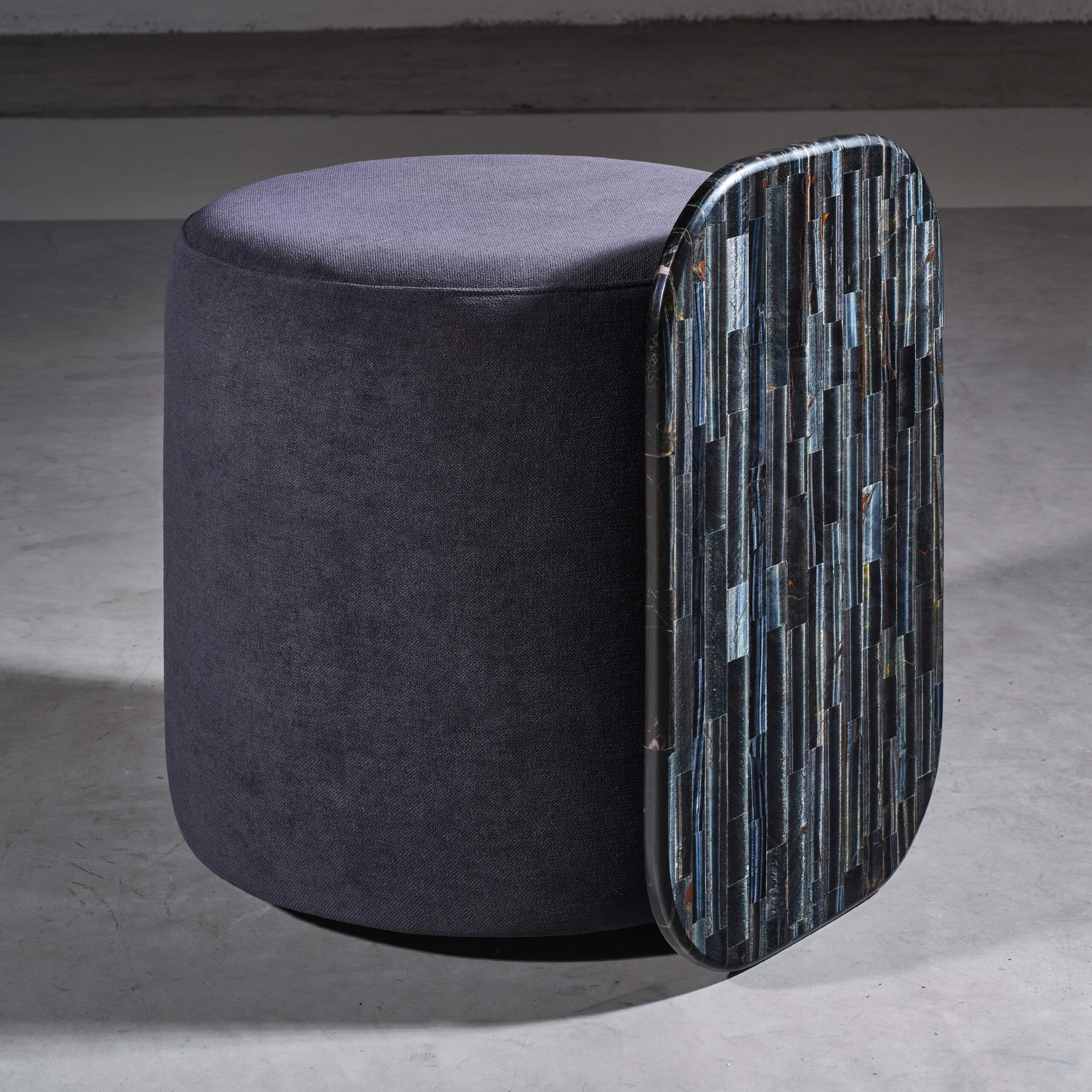 Un pouf con copertura in Tiger Eye blu di Nemesi