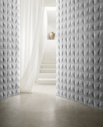- FACET – Piani geometrici che catturano la luce e la restituiscono in riflessi mutevoli - I prodotti utilizzati sono: Marmur Fine, CalceCruda Tinta a Stucco, NovaPrimer, Fase Silossanica.
