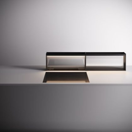 Brooklyn is an innovative and efficient exctraction system, designed by Francesco Lucchese for Falmec. It is composed by a 90 cm hood body with an opening panel, which can be fitted with 45, 60 or 90 cm side modules and/or a 60 cm module with tap.