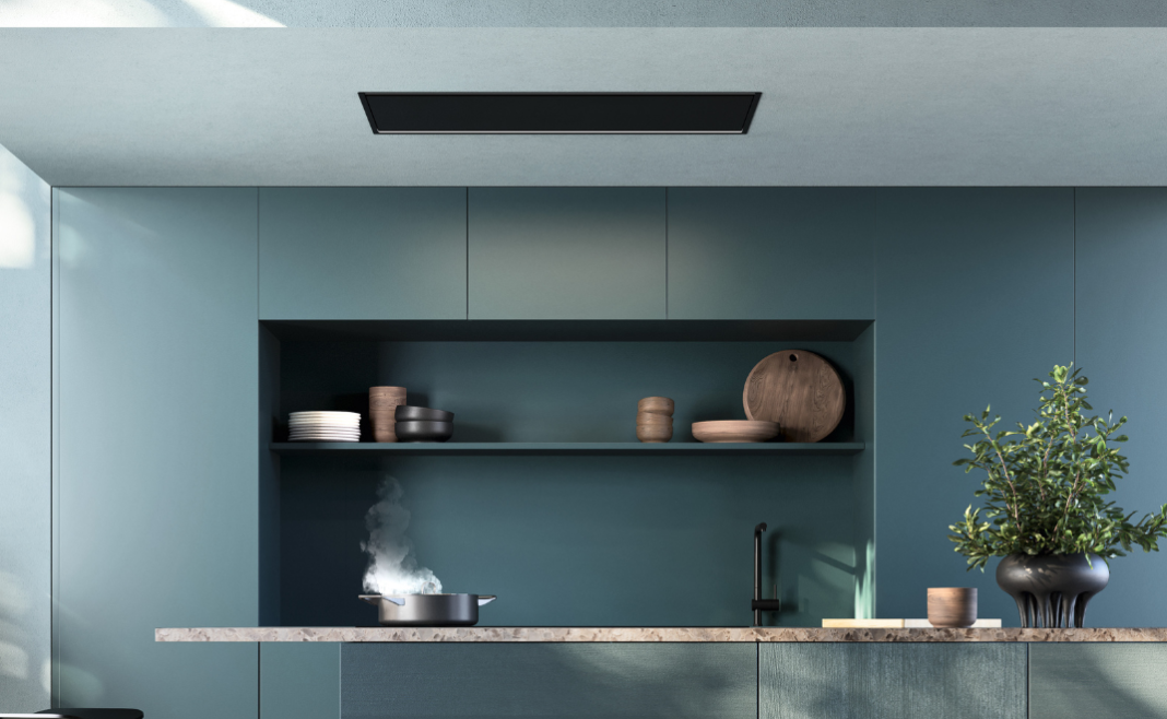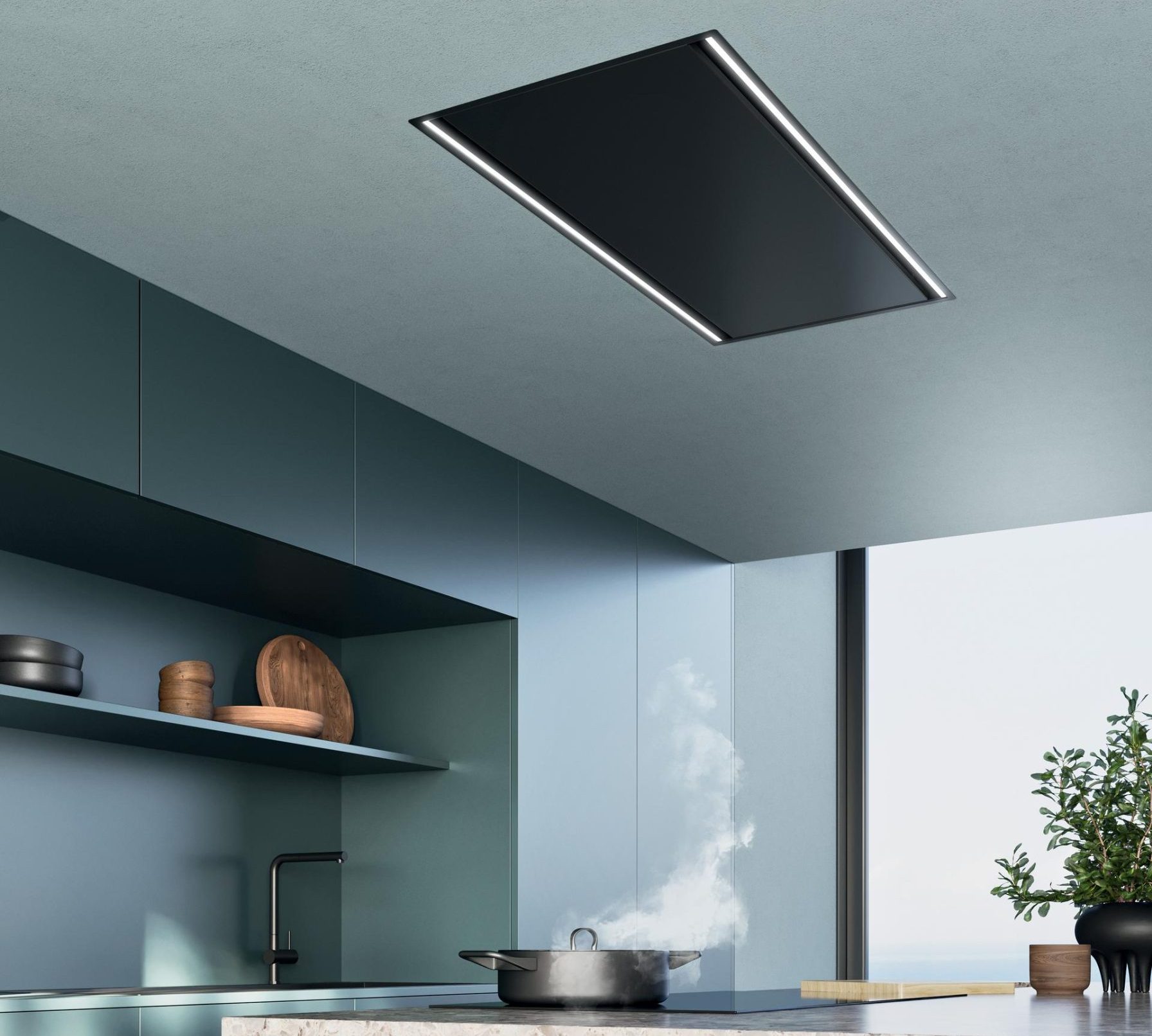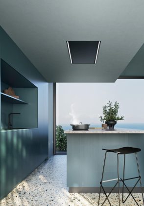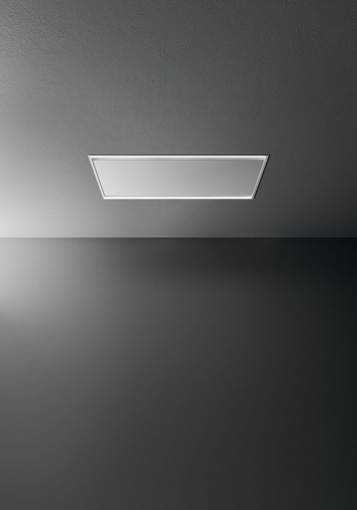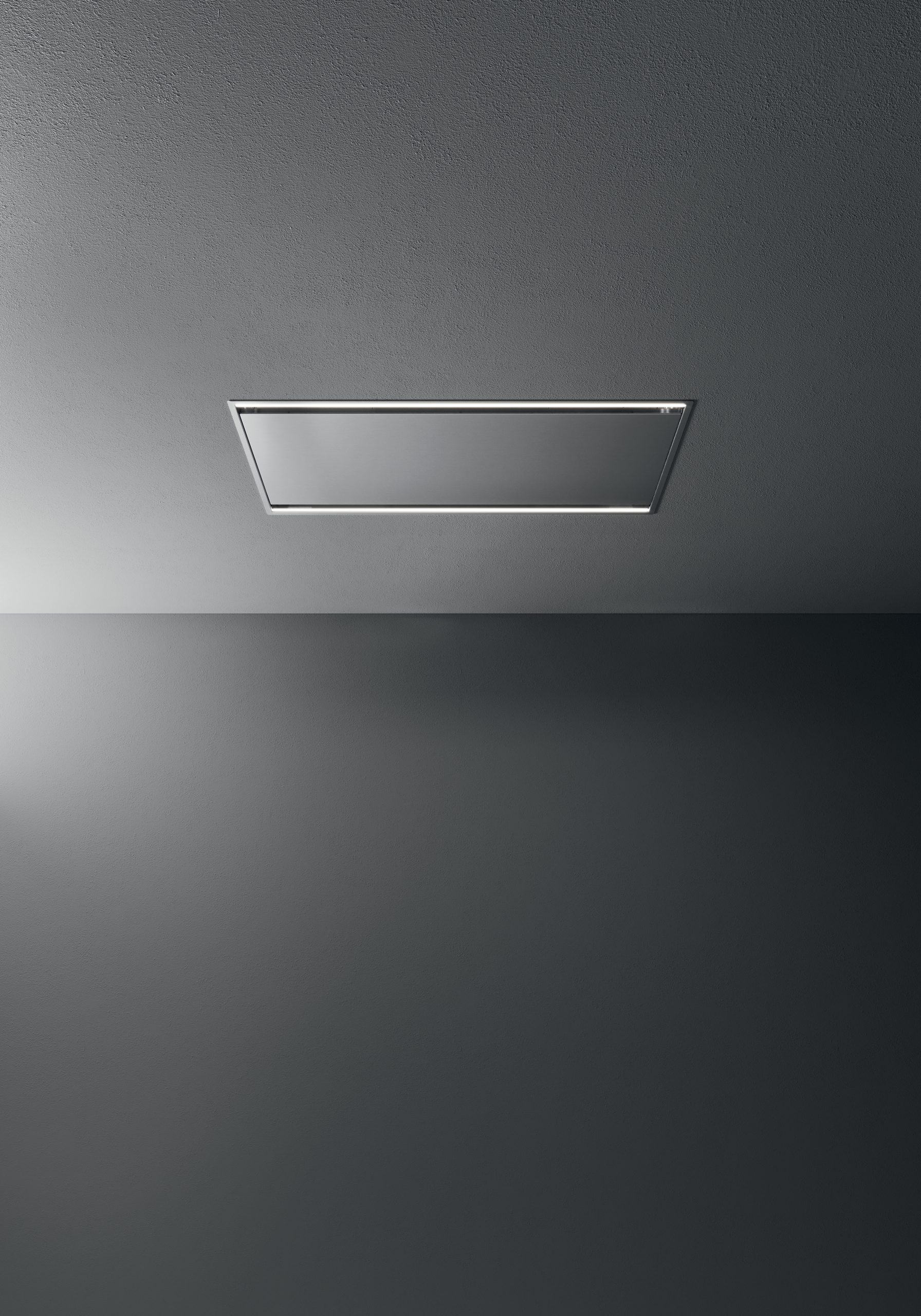 Leggerezza ed eleganza minimal sono le qualità distintive della nuova cappa a soffitto Mirage, di Falmec, modello quasi invisibile che si integra con discrezione nel progetto cucina lasciando piena scena alla cucina stessa. Il suo design sofisticato e tecnologicamente avanzato, che ne minimizza la presenza, si connota per due sottili strip led, che si accendono creando una gradevole atmosfera luminosa, grazie alla luce dinamica e dimmerabile. Una striscia led si adatta alle diverse tonalità ambientali, mentre l'atra assicura una visibilità ottimale sul piano cucina durante la preparazione dei cibi.