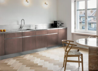Le nuance calde del rame e del bronzo caratterizzano l'acciaio inox nella nuova finitura ramata, che Abimis presenta in anteprima in una soluzione realizzata con la linea Atelier
