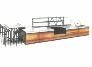 L'iconica cucina Sei disegnata da Marc Sadler si rinnova diventando un’architettura compatta che celebra il contrasto materico tra acciaio invecchiato e dettagli sartoriali