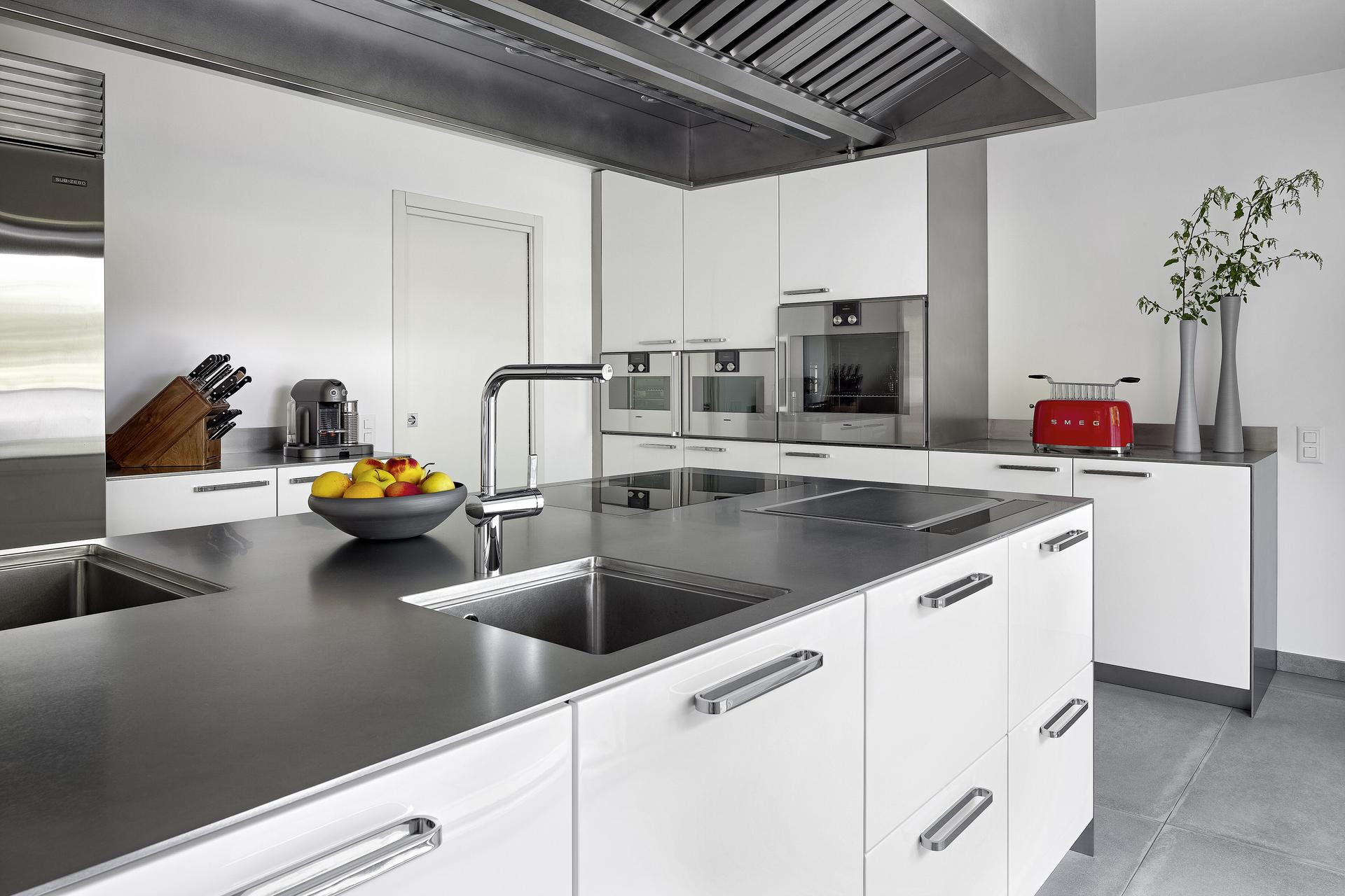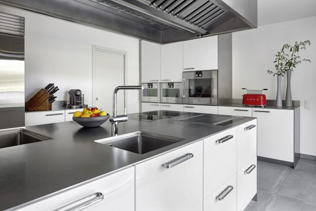 Le cucine in acciaio inox Abimis, disponibili anche con finitura laccata, lucida e opaca, realizzata con la tecnica impiegata nell’automotive per risultati visivamente perfetti e durevoli nel tempo, interpretano il Colore Pantone dell’Anno. La specifica tonalità di bianco impreziosisce così le linee morbide e arrotondate identitarie di Ego, disegnata da Alberto Torsello in omaggio all’estetica anni ‘50, e ammorbidisce il profilo più squadrato ed essenziale di Atelier, seconda famiglia progettuale di Abimis. Su misura e realizzate in risposta a specifiche esigenze di progetto, le cucine del brand sono disponibili non solo in molteplici colorazioni, ma anche liberamente configurabili nella composizione dei moduli e degli accessori integrabili, anche di derivazione professionale.