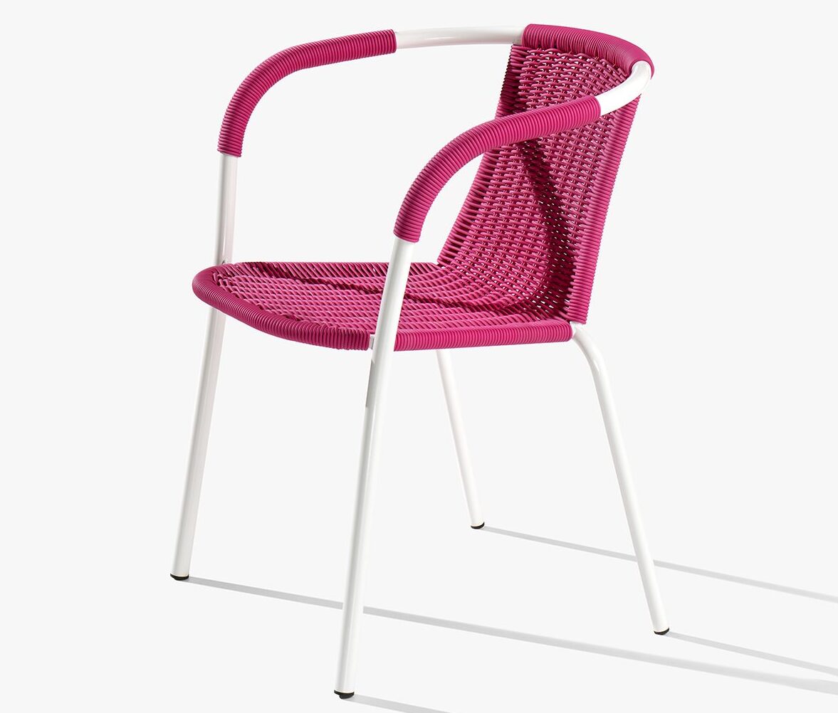E' realizzata da Et al. la poltroncina 001, che si connota per la seduta e lo schienale tessute in filo di PVC con finitura opaca, disponibile in sei colori: anice chiaro goffrato, blu, mattone, magenta goffrato, rosso, verde militare goffrato. La struttura snella è realizzata in acciaio verniciato in varie tonalità, tra cui il bianco. La sedia pesa solo 5,6 kg e misura 50 x 59 cm.