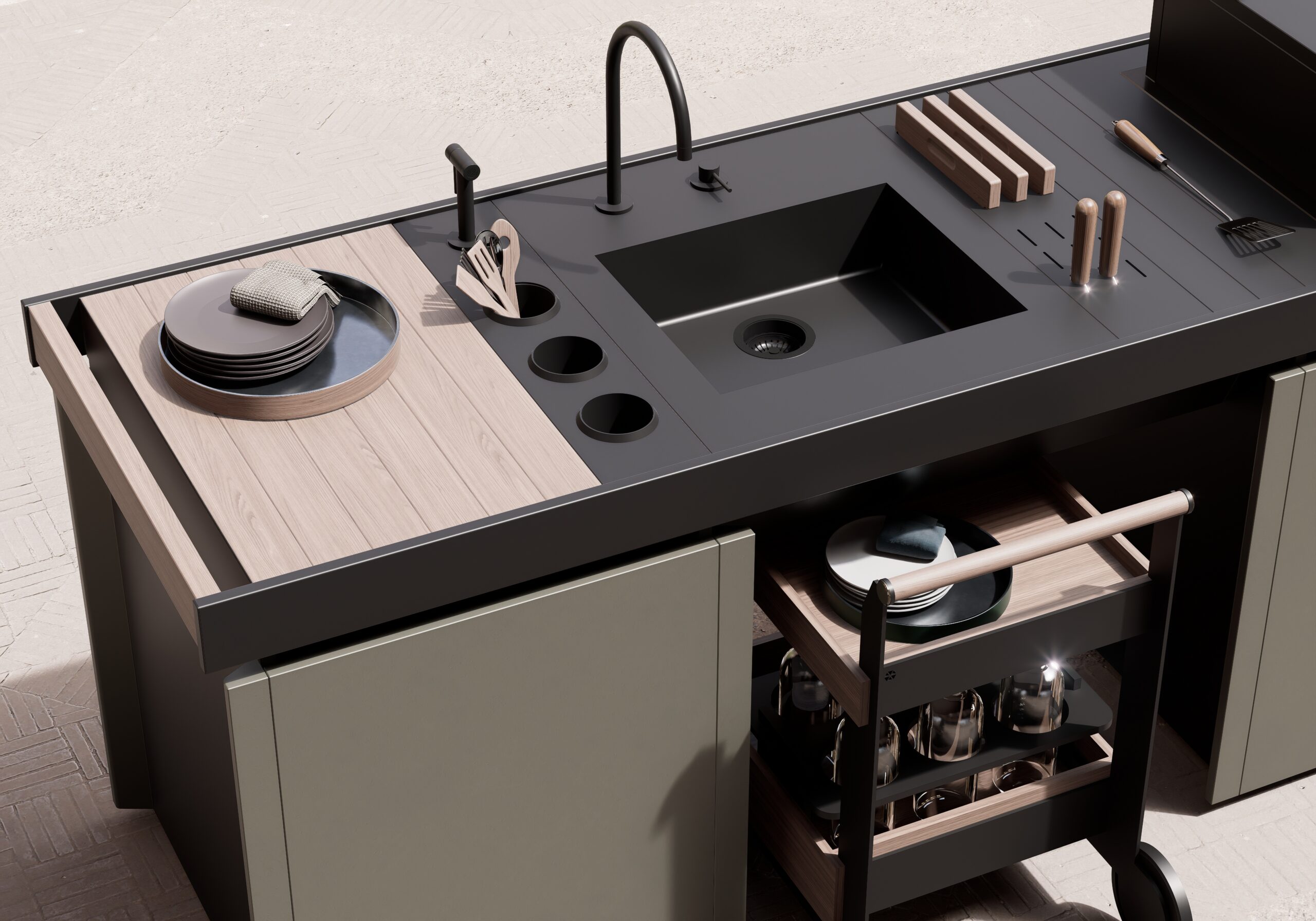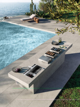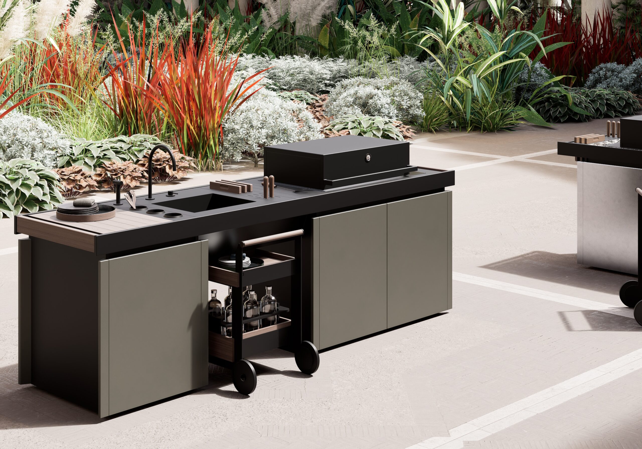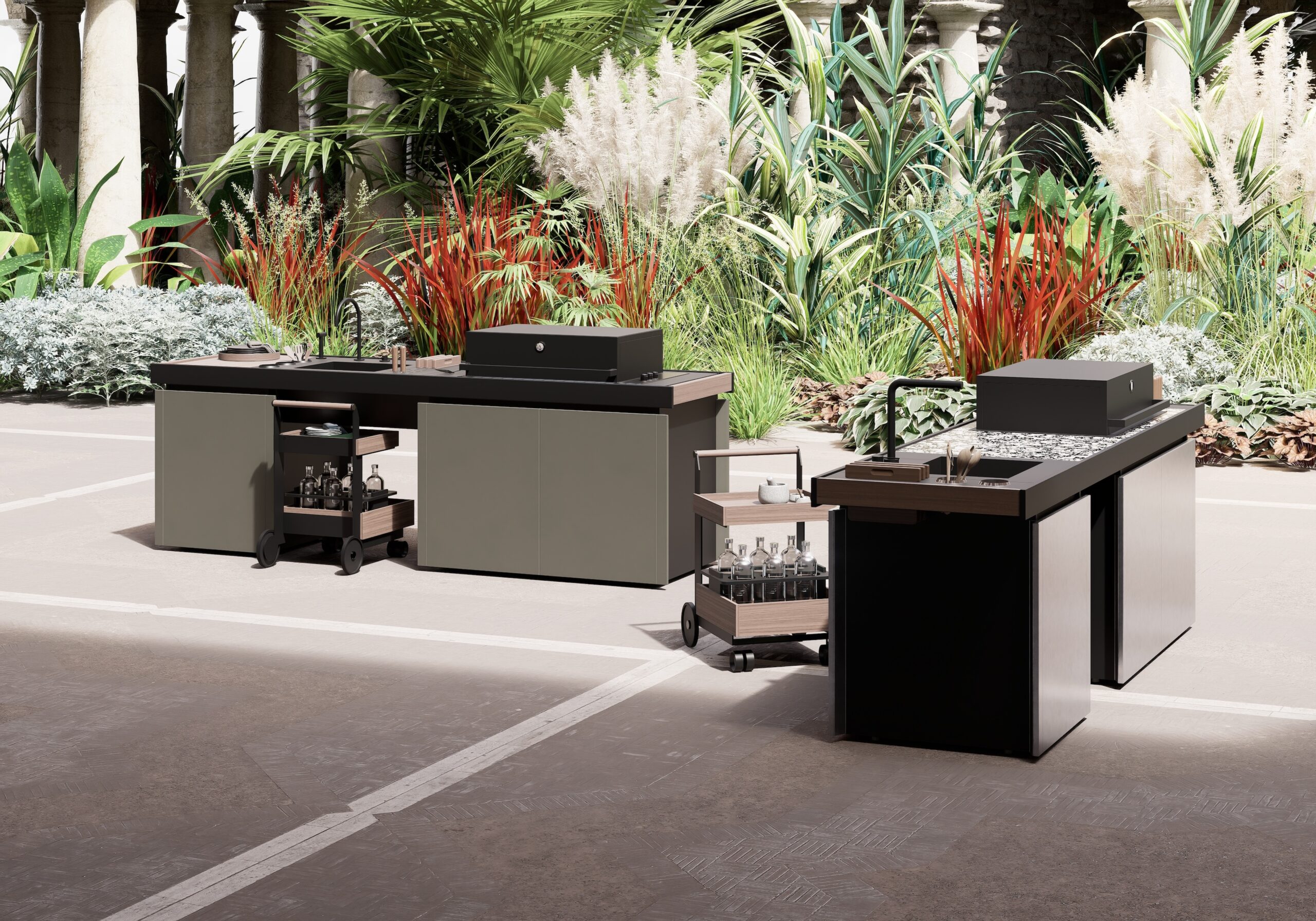 accogliere i prodotti Thalas e valorizzarne la presenza negli spazi esterni. Nascono così soluzioni coordinate che uniscono funzione ed estetica, permettendo di configurare composizioni armoniche e coerenti dal punto di vista del progetto. Un’estensione della collezione Outdoor che offre quindi continuità formale, libertà compositiva e una nuova idea di outdoor kitchen: completa, evoluta e perfettamente integrata nell’architettura.