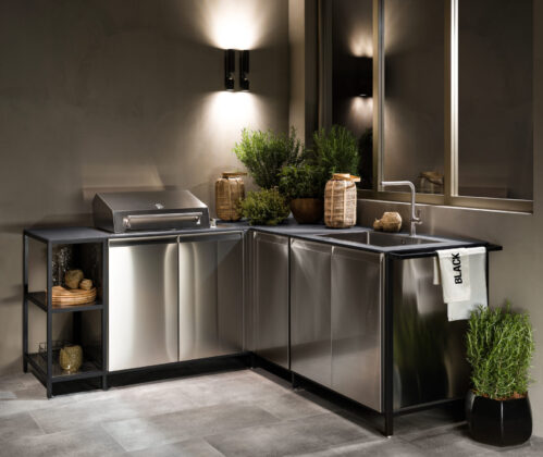 Si chiama Dreams la prima cucina outdoor della tedesca Miele, che per la prima volta applica la propria esperienza pluriennale al settore dei prodotti per esterni. Dreams è un sistema modulare: attorno al barbecue, cuore del progetto, la cucina outdoor si può ampliare, ad esempio, con un piano cottura, un barbecue a calore superiore per temperature estreme, un modulo lavello completamente attrezzato o un frigorifero da esterno. Le basi sono costituite da moduli con cassetti o ripiani per il contenimento; otre 60 accessori offrono, inoltre, la possibilità di personalizzare ulteriormente la cucina. Per chi desidera poi cimentarsi nella progettazione, Miele propone un configuratore che consente di scegliere tra 6 soluzioni: Dome, Rise, Essence, Advance, “Master” e Signature.
