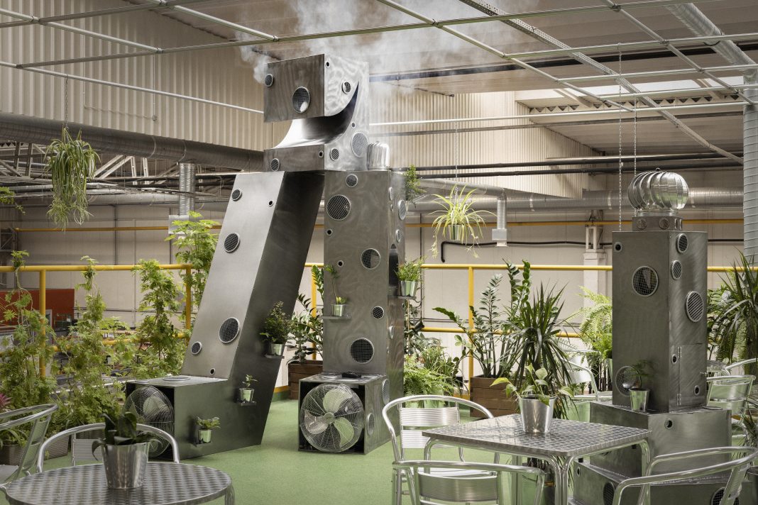 Per celebrare i 20 anni della presenza di Elica in Polonia, la Fondazione Ermanno Casoli presenta Inhalatorium, opera site-specific dell’artista Cezary Poniatowski, vincitore della XXIII edizione del Premio Ermanno Casoli 2025, realizzata con il coinvolgimento attivo dei dipendenti Elica e inaugurata nello stabilimento di Elica Group Polska a Jelcz-Laskowice lo scorso 14 giugno. Inhalatorium è un’installazione di grandi dimensioni composta da diversi elementi scultorei in metallo: concepito per un’area rialzata al centro dello stabilimento e affacciata sulle linee di produzione, l’intervento artistico, oltre che opera d’arte, diventa spazio comune condiviso, trasformando l’ambiente in un paesaggio surreale e ibrido.