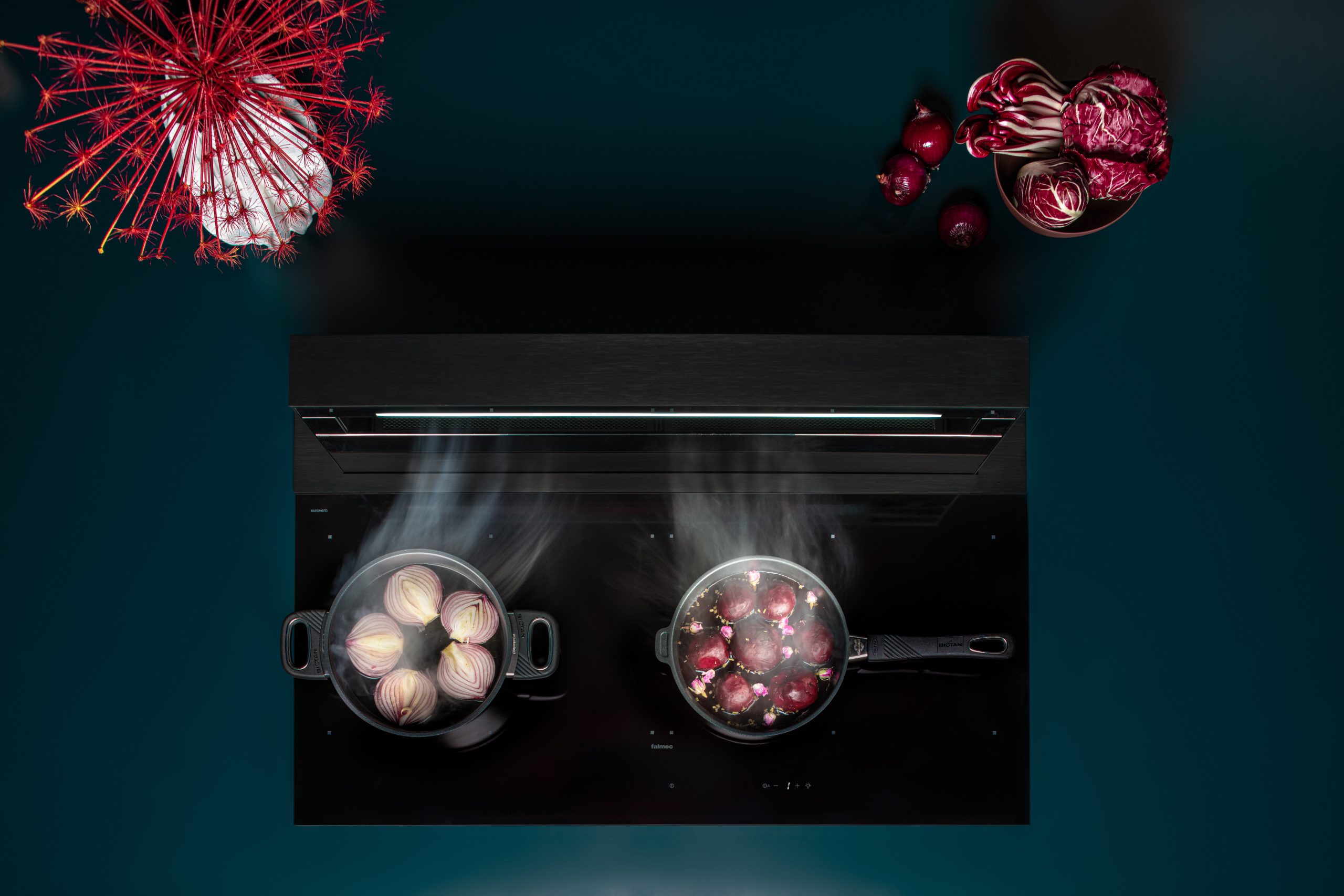 In Level One aspirazione e cottura ad induzione si integrano in un’unica soluzione caratterizzata da un ricercato abbinamento di materiali e cura dei dettagli. Alluminio satinato nero, vetro fumé e illuminazione led dinamica del corpo aspirante, si uniscono alla vetroceramica nera del piano a induzione disponibile in due varianti: lucida oppure opaca antigraffio, dotate di controllo touch con eleganti led bianchi. Il piano a induzione presenta 4 zone di cottura disposte in linea e 9 livelli + boost, la funzione Automode dà la possibilità di regolare in modo automatico l’aspirazione in base alla potenza di cottura. Level One integra la tecnologia Flex Surface con funzione doppio bridge, anche per pentole di grandi dimensioni. Completano l’esperienza le funzioni Keep Warm, per mantenere le pietanze alla temperatura ideale, e Chef Mode per impostare temperature diverse su ogni zona di cottura.