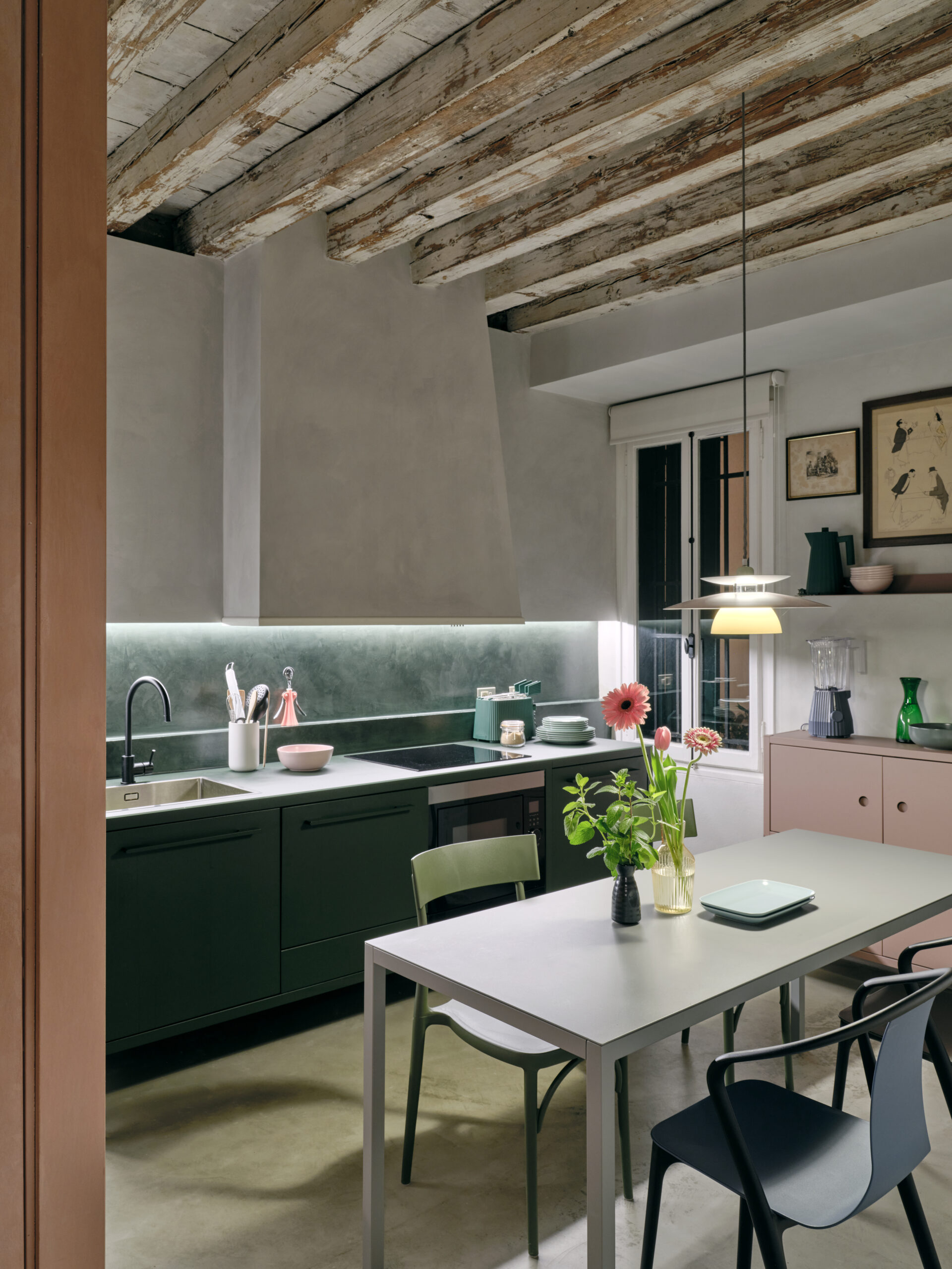 The Frame kitchen and other Fantin’s pieces of furniture are a descreet and harmonious, presence throughout Casa Della Sensa in Venice.
