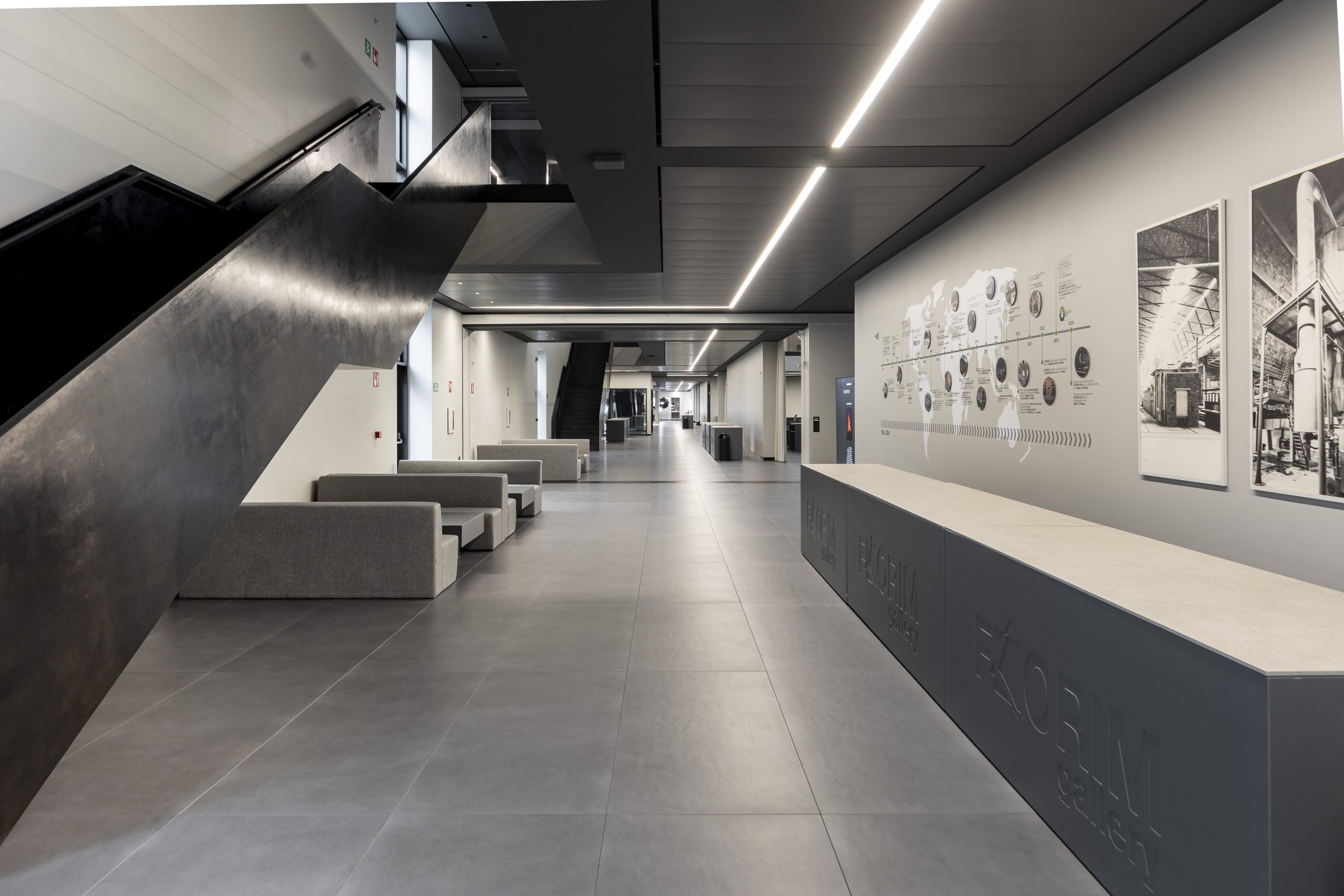 Aperta nel 2013, la struttura si sviluppa su due livelli e ha un fulcro centrale, aperto a doppia altezza, destinato a grandi eventi, il piano superiore è invece dedicato all’esposizione dei prodotti. Alla fine del 2024 è stato avviato un intervento di ristrutturazione per ridefinirne il concept espositivo e valorizzare l’esperienza degli ospiti. Il piano terra mantiene la sua funzione di spazio per eventi e ospitalità aperti al territorio, riproposta in un’atmosfera più elegante e raffinata. “Il primo piano – spiega Nunziati -è stato oggetto di un competo restyling, questo perché il mondo delle superfici ceramiche negli ultimi anni è completamente cambiato: sono cambiate le dimensioni, con lastre di oltre 3 metri, gli spessori, da 3 a 20 mm, e sono evolute le tecnologie a disposizione per la resa estetica e tecnica dei prodotti. Abbiamo pensato quindi che dovesse cambiare anche il modo di esporli per comunicare in modo più efficace con gli architetti, gli interior designer, il settore immobiliare e le aziende dell’arredo che sono i nuovi utilizzatori di questo materiale. Per questo abbiamo voluto creare un’esperienza immersiva pensata per raccontare tutte le potenzialità progettuali della materia ceramica che incontra nuove destinazioni d’uso, tra cui cucine, armadi, SPA, piatti doccia, outdoor, nautica e tante altre”.