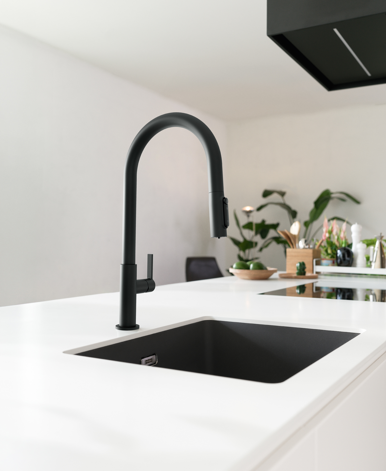 Grazie alla sua canna user-friendly, Maris Slim Clear Water è la scelta ideale per progettare una cucina perfetta dal punto di vista della funzionalità. La pratica canna a J con doccia estraibile a 360° garantisce infatti un accesso intuitivo all’acqua normale e all’acqua filtrata pronta da bere, oltre a consentirne una maggiore portata. Progettato per migliorare il comfort durante l'utilizzo dell'acqua per la preparazione dei cibi o la pulizia, il miscelatore elegante e flessibile è concepito per coniugare design sottile e raffinato a un'eccezionale praticità. I miscelatori multifunzione Maris Slim Clear Water sono disponibili in una gamma di colori accattivanti e di tendenza, tra cui Cromo, Decor Steel, Black Matt, Antracite, Gold e Copper, per integrarsi in modo sofisticato e flessibile con il proprio stile personale. Si integrano inoltre perfettamente con tutti i lavelli e le vasche Franke, diventando una scelta versatile all’interno di un sistema integrato che trasforma la cucina in uno spazio che riflette davvero le esigenze della famiglia.