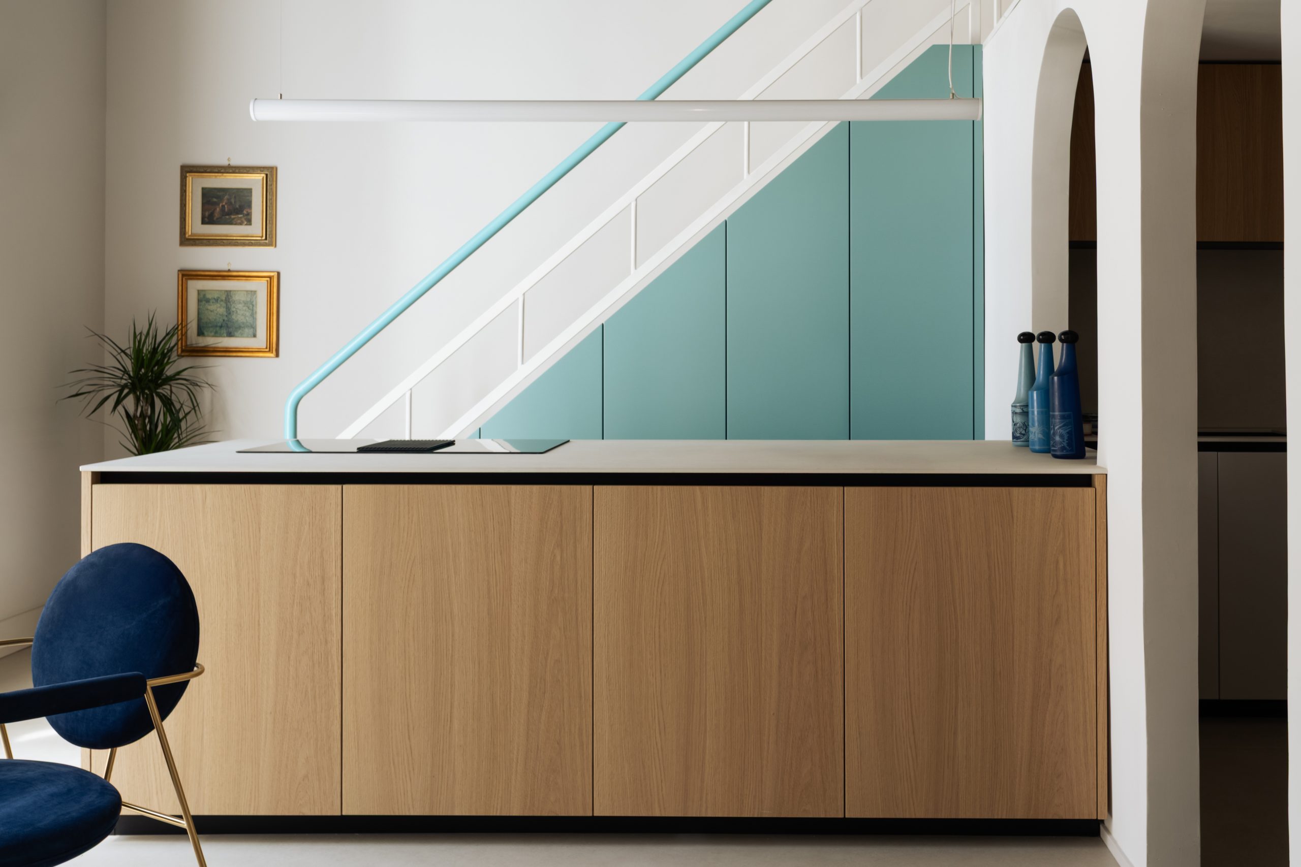 Il progetto firmato dallo studio Labia Design ha restituito continuità e identità ad un’abitazione su due livelli a Napoli, dove la cucina arredata da Arrital si “sdoppia” in due ambiti funzionali