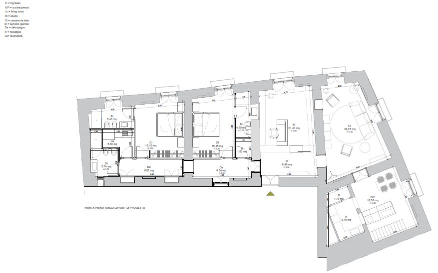 PIANTA _ DETTAGLIO ZONA CUCINA-PRANZO, LIVING E STUDIO