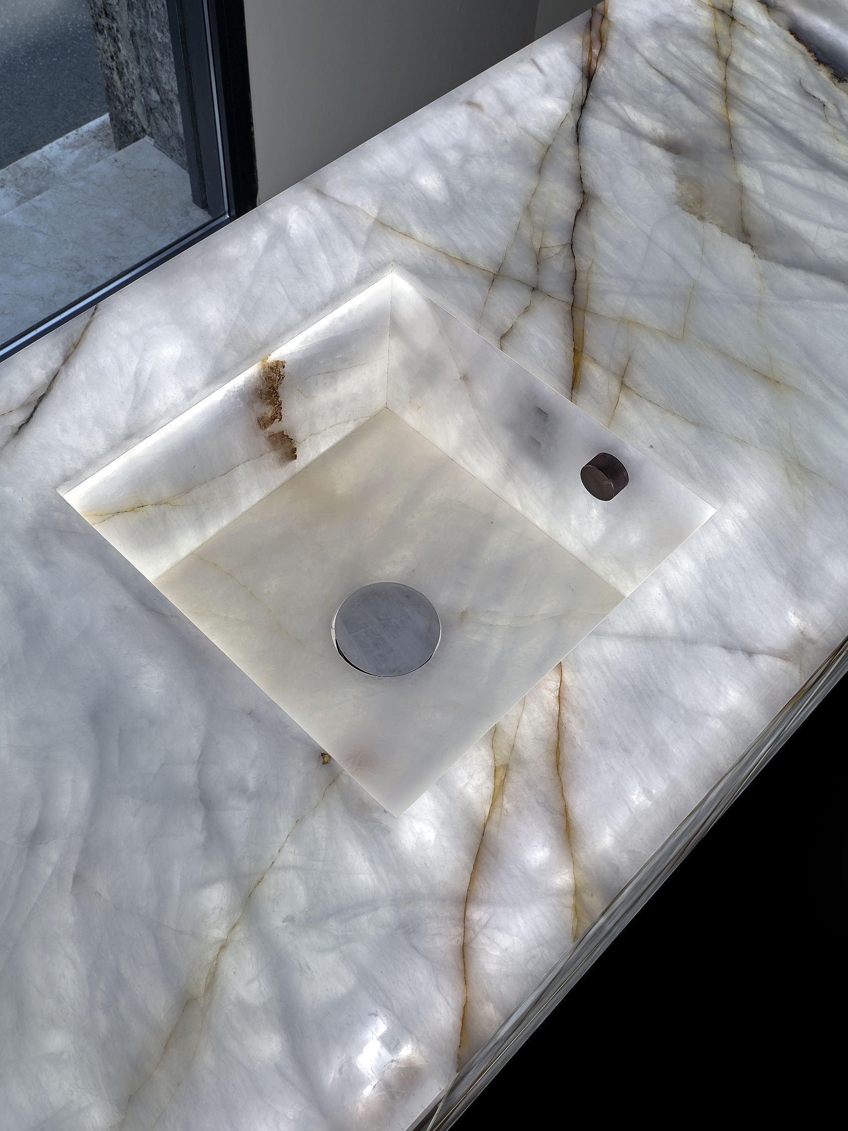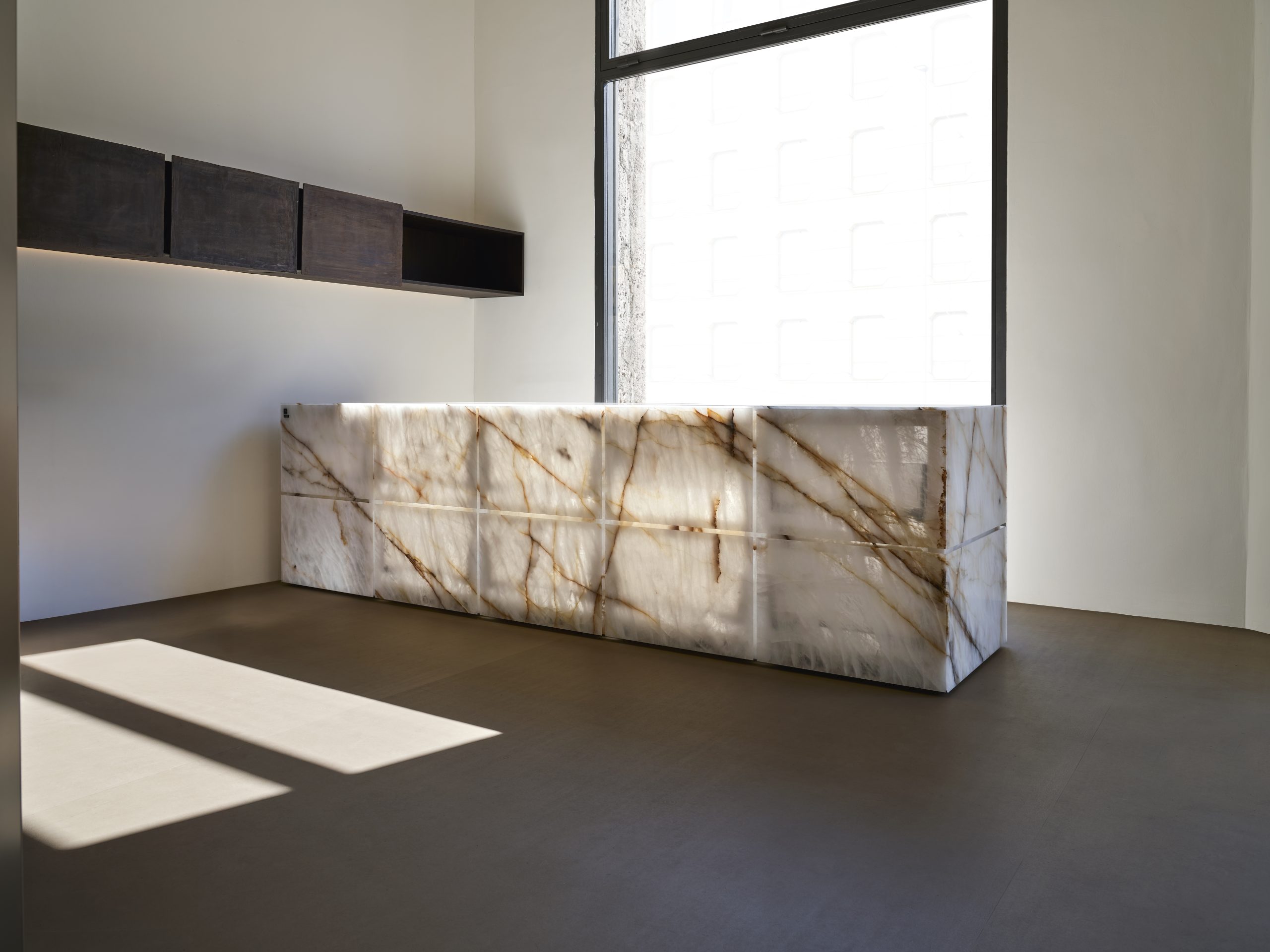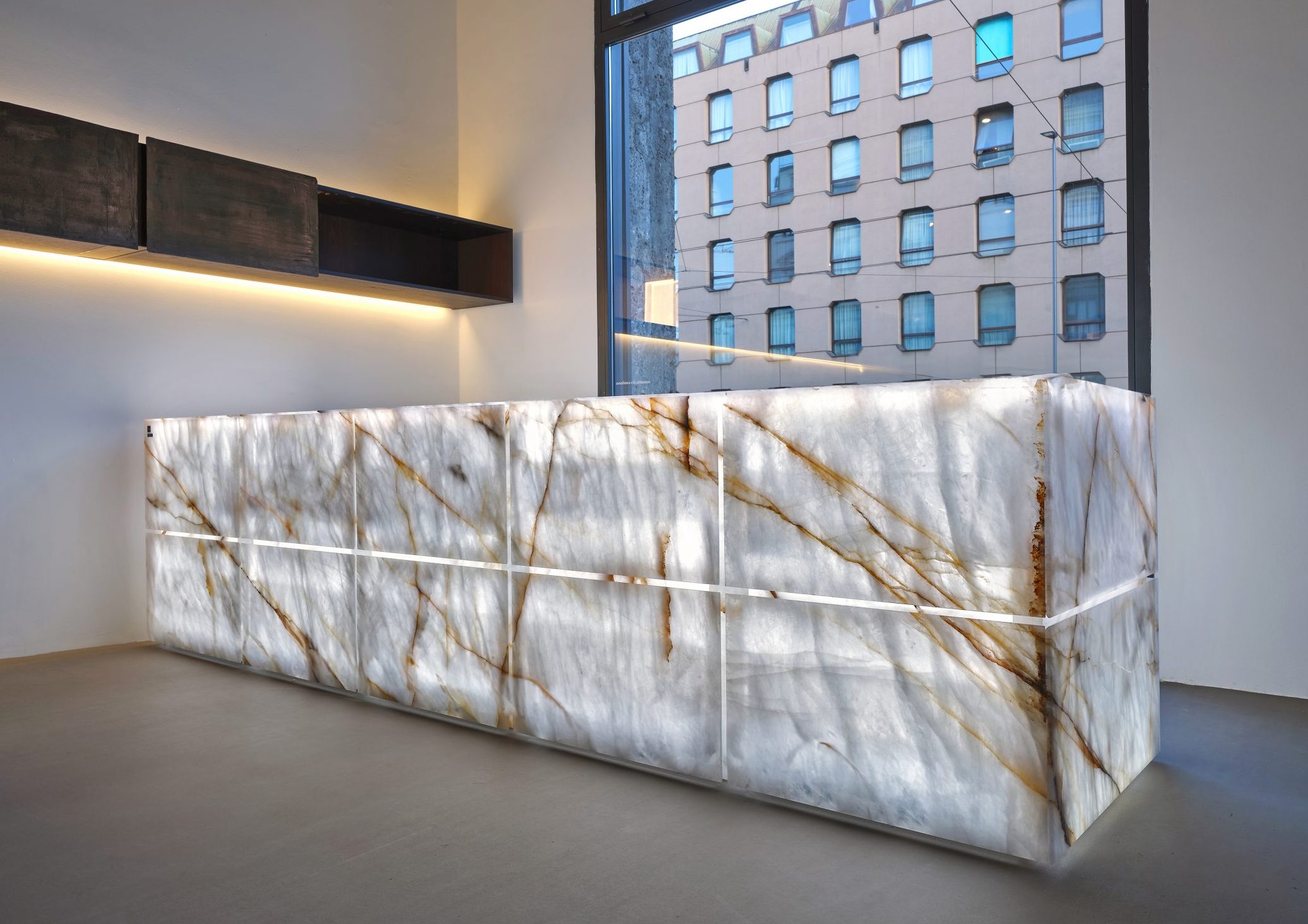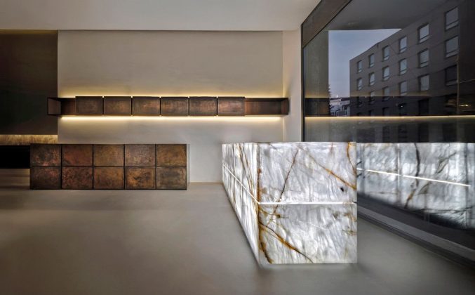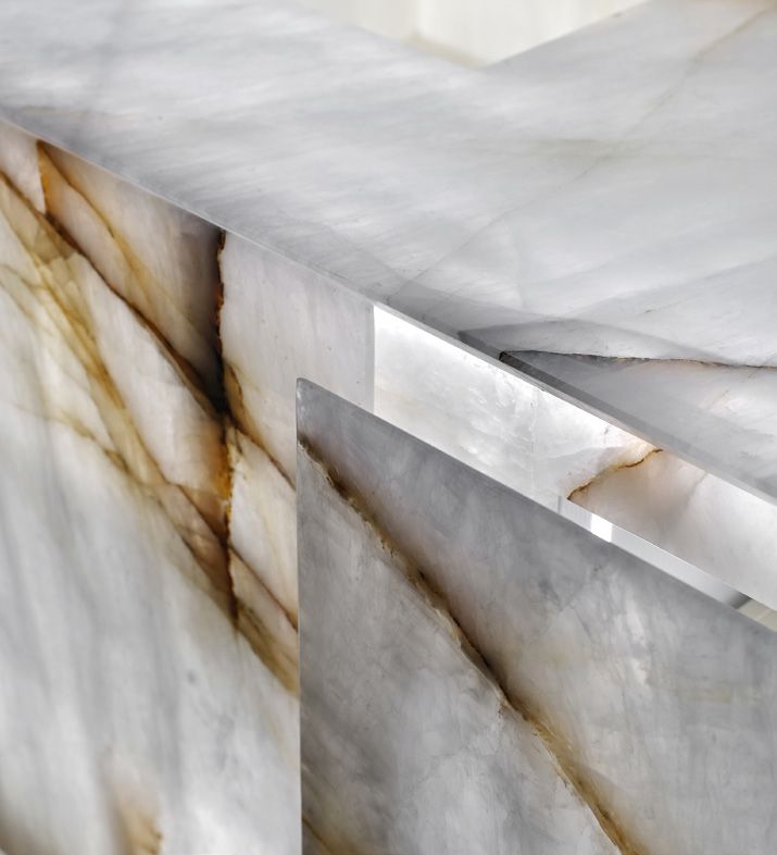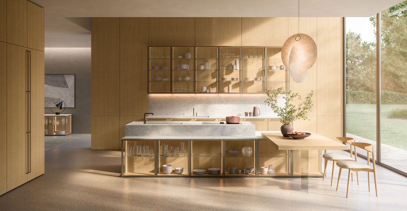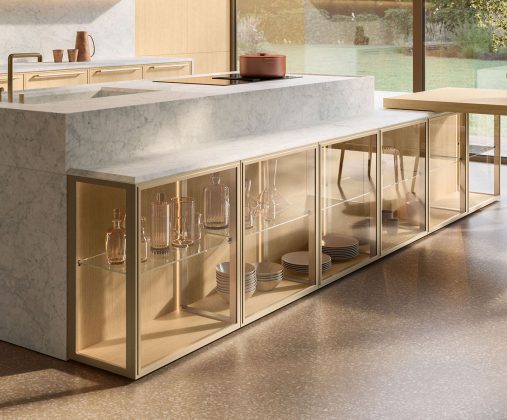 Risplende letteralmente l’isola Terra Luce (design Claudio Silvestrin) di minotticucine by asso group, realizzata completamente in quarzo naturale Cristallo Vitrum Wow di Antolini, grazie a cui è stato possibile creare un’esperienza visiva unica. La peculiare trasparenza di questo quarzo naturale lascia infatti filtrare la luce fino all’interno della cucina, creando riflessi a seconda dell’inclinazione dei raggi solari. La sera, invece, uno speciale sistema di illuminazione interna “accende” il volume dell’isola senza creare punti d’ombra e diffondendosi in modo uniforme, impiegando la stessa tonalità della luce solare.
