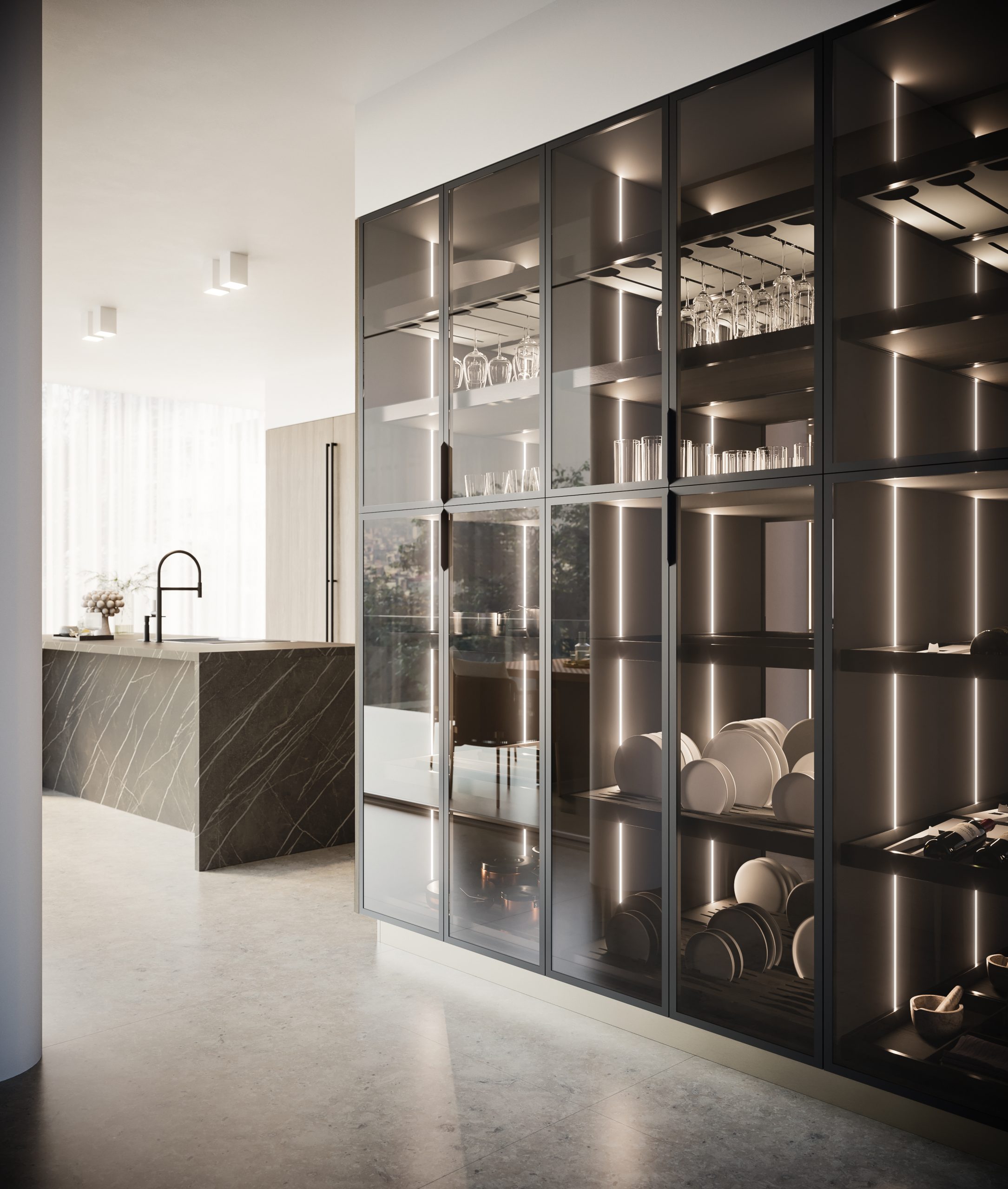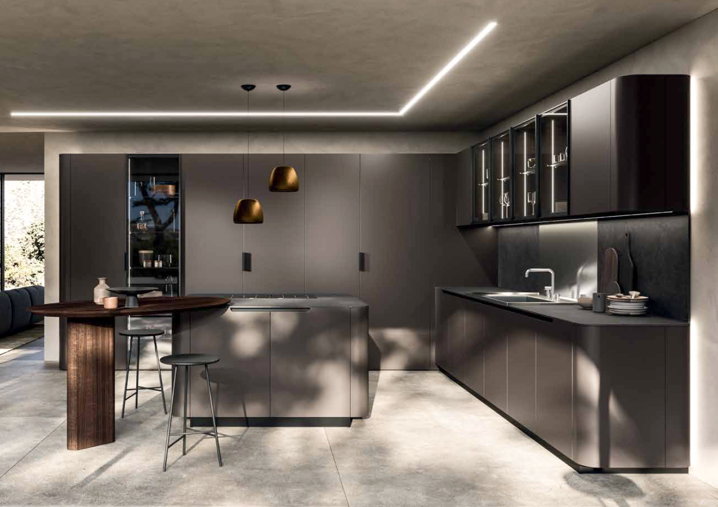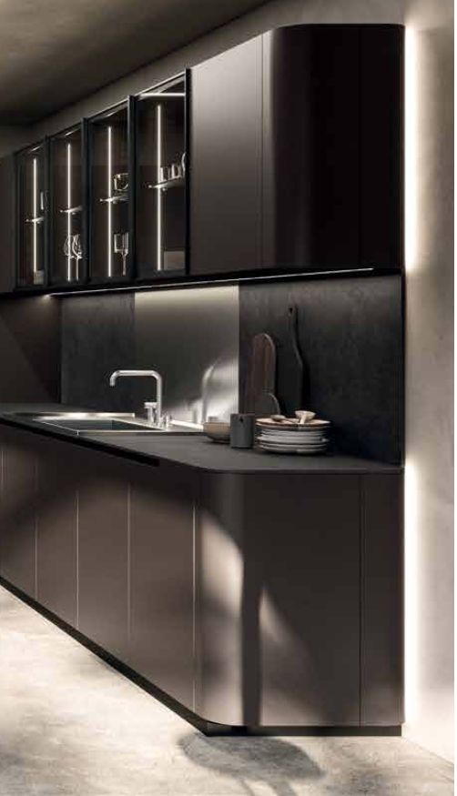 Da semplice accessorio indipendente, spesso collocato a posteriori, come plus, la luce in cucina si "evolve" e non solo enfatizza pensili, colonne e basi a vetrina, ma si fa sottile linea grafica per evidenziale profili, dettagli e volumi. Grazie al strip led integrati nei mobili, le cucine diventano così spazi scenografici e carichi di atmosfera, ma anche luoghi più sicuri: maggiore visibilità sulle zone lavoro e dentro i moduli incrementa infatti il principio di usability dell'arredo.