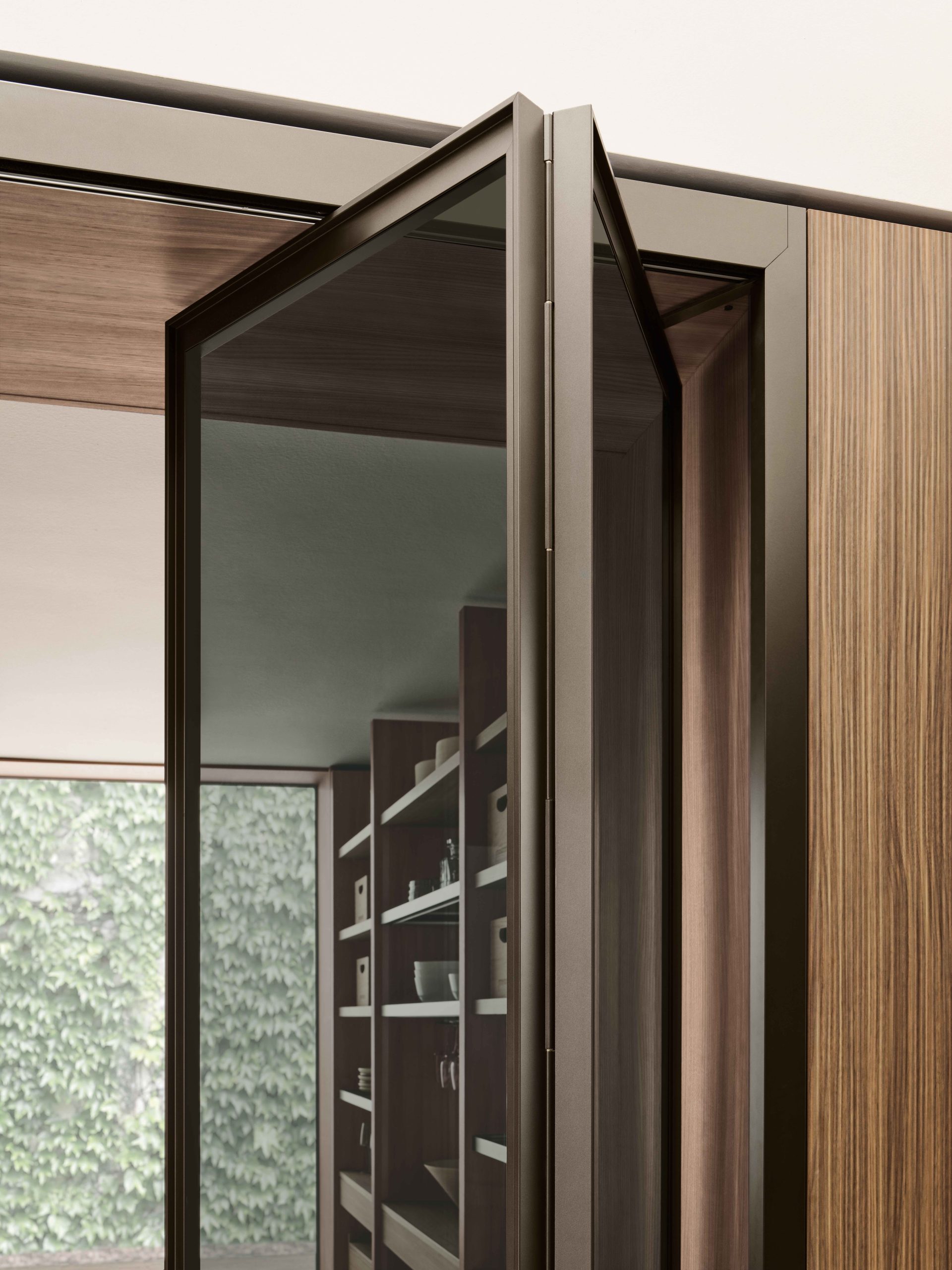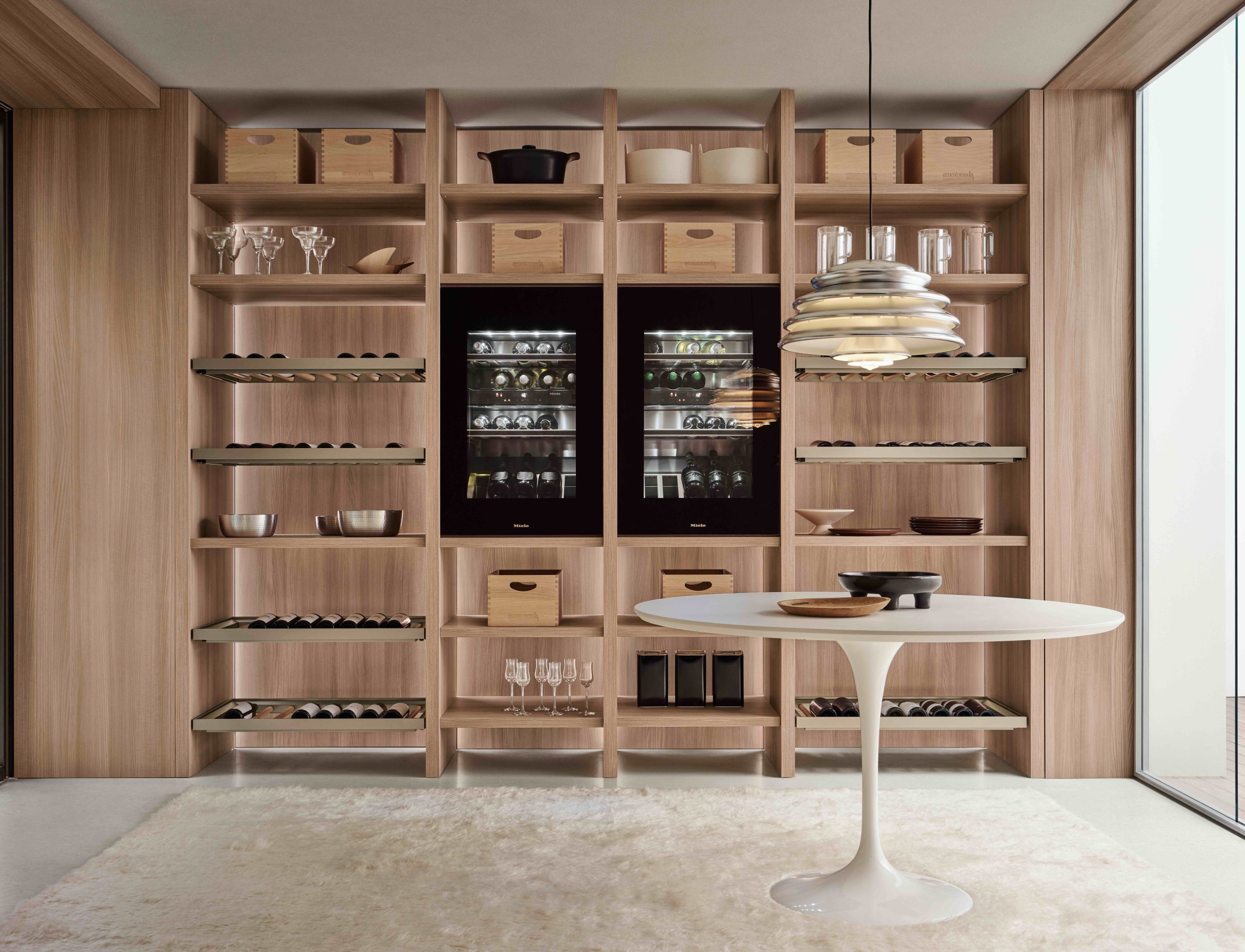 Back System di Ernestomeda interpreta così un’idea di contenimento flessibile che ridefinisce la funzionalità della cucina dando vita a utility room super attrezzate e a se stanti, riservate e richiudibili grazie agli specifici sistemi di porte del brand. "Back System nasce come sistema complementare ed integrato alla cucina. È costituito da una serie di elementi verticali a colonna e varia la sua destinazione d’uso a seconda degli accessori e delle attrezzature con le quali può essere personalizzato. Un vero e proprio spazio complementare, perfettamente organizzato e attrezzato, protagonista al pari della cucina stessa. Back System è quindi un sistema versatile che segue gli stessi criteri di modularità e finiture della cucina, con il quale si possono organizzare propri spazi funzionali, autonomi, articolati ed integrati. Costituito da una spalla portante, si può personalizzare con accessori e attrezzature specifiche appositamente realizzate ed adattabili alle più svariate esigenze, per trasformarsi in una cantina, una dispensa