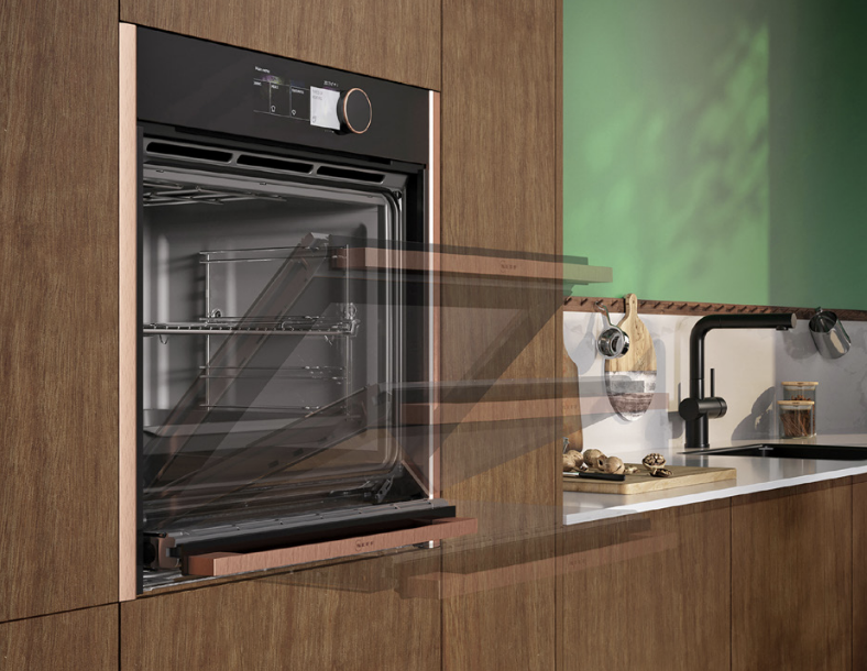 Ergonomia. La porta a scomparsa Slide&Hide® offre libertà di movimento facilitando l’accesso al forno e ottimizzando lo spazio disponibile.