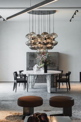 Ogni showroom Henge, compreso questo nuovo di Dubai, nasce da un approccio site-specific. La progettazione tiene conto della luce, delle proporzioni e dell’architettura locali senza tradire i valori fondamentali del brand: autenticità, qualità e ricerca. Nello spazio di Dubai le aree living e dining sono articolate secondo una narrazione fluida e raffinata, pensata per trasmettere un’idea di abitare consapevole e sofi sticato.