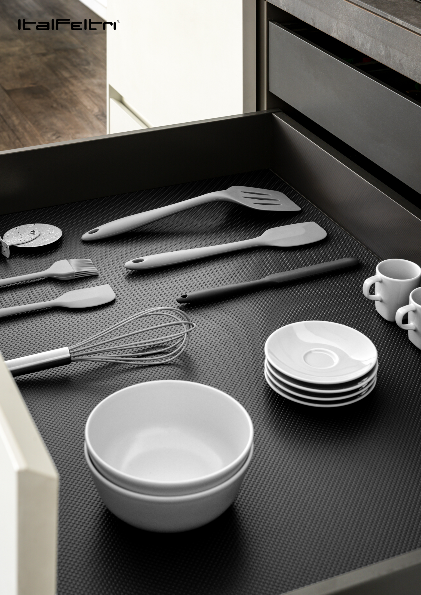 Among the various products of our Furniture Division, PVC non-slip mats are the perfect accessories for drawers and shelves in modern kitchens.