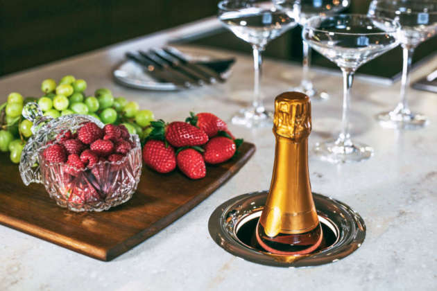 Spumante fresco e subito a portata di mano con Kaelo di Frigo 2000, refrigeratore integrato e facilmente installabile sui piani e nei mobili Frigo 2000, che offre un modo semplice e immediato per servire vino, champagne, acqua e bevande mantenendo il contenuto della bottiglia alla temperatura di servizio, anche dopo averla aperta. Realizzato a mano in Inghilterra da maestri artigiani, Kaelo è costituito da una corona in acciaio marino inossidabile 316L, lucidata a mano con finitura a specchio o spazzolata, resistente alla corrosione delle condizioni saline, e quindi installabile anche su barche, camper e roulotte. È completo di comandi touch e di illuminazione interna a scelta tra 27 colori.