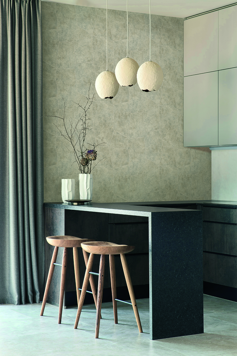 Materiali tecnologici, trattamenti impermeabili e finiture antibatteriche trasformano le carte da parati in uno strumento progettuale efficace per l’ambiente cucina