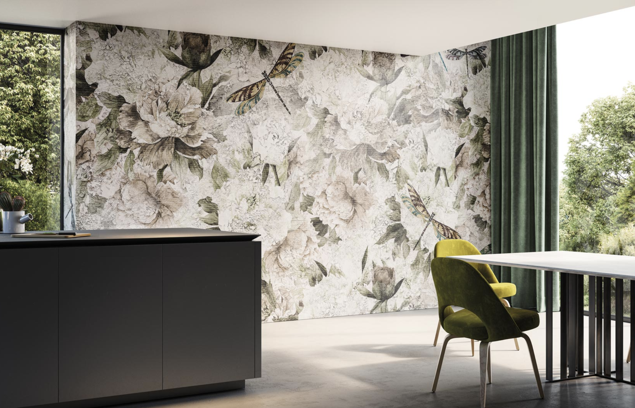 Le carte da parati Wall/Pepper® ridefiniscono il concetto di decorazione negli ambienti più esposti ad acqua, vapore e umidità, come le cucine, grazie al materiale WP/H2O, una soluzione che unisce ricerca tecnologica, performance e libertà creativa. WP/H2O è un rivestimento idrorepellente in fibra di vetro ad alta densità che, abbinato al protettivo bicomponente WallSilk® Antibacterial Bi, assicura superfici durevoli, sicure e facilmente lavabili. La presenza di sali d’argento contribuisce inoltre a rendere le superfici antibatteriche, favorendo ambienti più igienici e salubri. In cucina WP/H2O rappresenta una soluzione ideale per rivestire pareti soggette a schizzi, vapore e variazioni di temperatura, come backsplash e superfici in prossimità dei piani di lavoro. Forme geometriche grandi si sovrappongono e si intrecciano, creando un effetto visivo dinamico, fluido e moderno in Geometrico scomposto (Wall/Pepper® Creative Team), mentre in Provence (Design Alice Carmen Goga) è evidente il fascino che il mondo floreale esercita sulla designer, che rende la natura protagonista onnipresente delle sue illustrazioni. “Culinary Maestro” (Dalwin Designs) è una vera e propria ode ai sapori e all'arte culinaria, in cui ogni frutto e ogni verdura sono rappresentati con eccezionale realismo e precisione artistica.