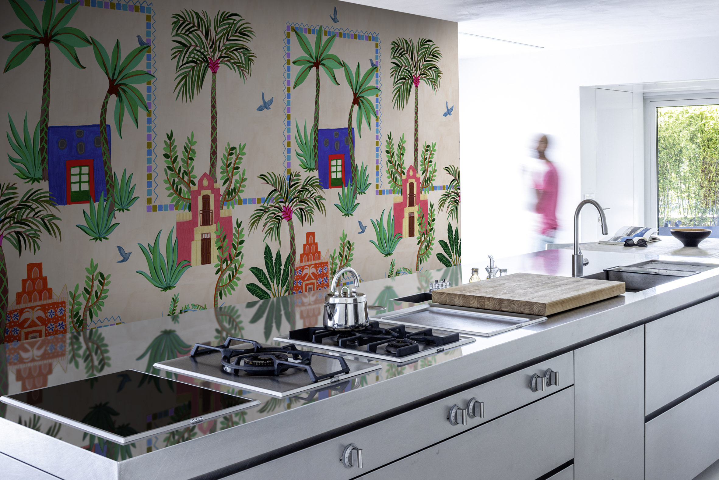 Da ariosi paesaggi botanici, texture astratte, pattern leggeri o coloratissimi, cangianti superfici dorate, le carte da parati SpaghettiWall vestono in modo eterogeneo lo spazio per eccellenza della casa e ne permettono la massima personalizzazione. Sono oltre 700 le grafiche a catalogo disponibili, ciascuna declinata in più varianti cromatiche. Le superfici possono essere utilizzate a piena parete, come boiserie, anche comprese tra i blocchi della base e i pensili o ancora a soffitto, per dar vita a un effetto ‘scatola’ vibrante e dinamica o realizzare solo una porzione di rivestimento. Il supporto Sablè di SpaghettiWall, arricchito con la finitura Cleaning Finish, o il Pop White in fibra di vetro, con trattamento Waterproof Finish, sono ideali per una posa della carta da parati in cucina. Possono essere facilmente trattati con prodotti di pulizia e assicurare resistenza al contatto con l’acqua, mentre garantiscono la stampa ad altissima risoluzione dei soggetti grafici. Making Knots (Design Gian Paolo Venier) trae ispirazione dall’omonima installazione di Gian Paolo Venier e Giorgio Biscaro realizzata a sostegno di Made51, il porgramma umanitario a supporto degli artigiani in fuga dai territori di guerra, e l’UNHCR Alto Commissariato delle Nazioni Unite per i Rifugiati, mentre Nebula (design Monogramma Studio) propone un design sofisticato e soffuso, caratterizzato da linee sottili e sfumature delicate. Vado in Messico (Design Carolina Palella), racconta un universo esotico con colori brillanti e dettagli che fanno viaggiare la mente verso mete lontane.