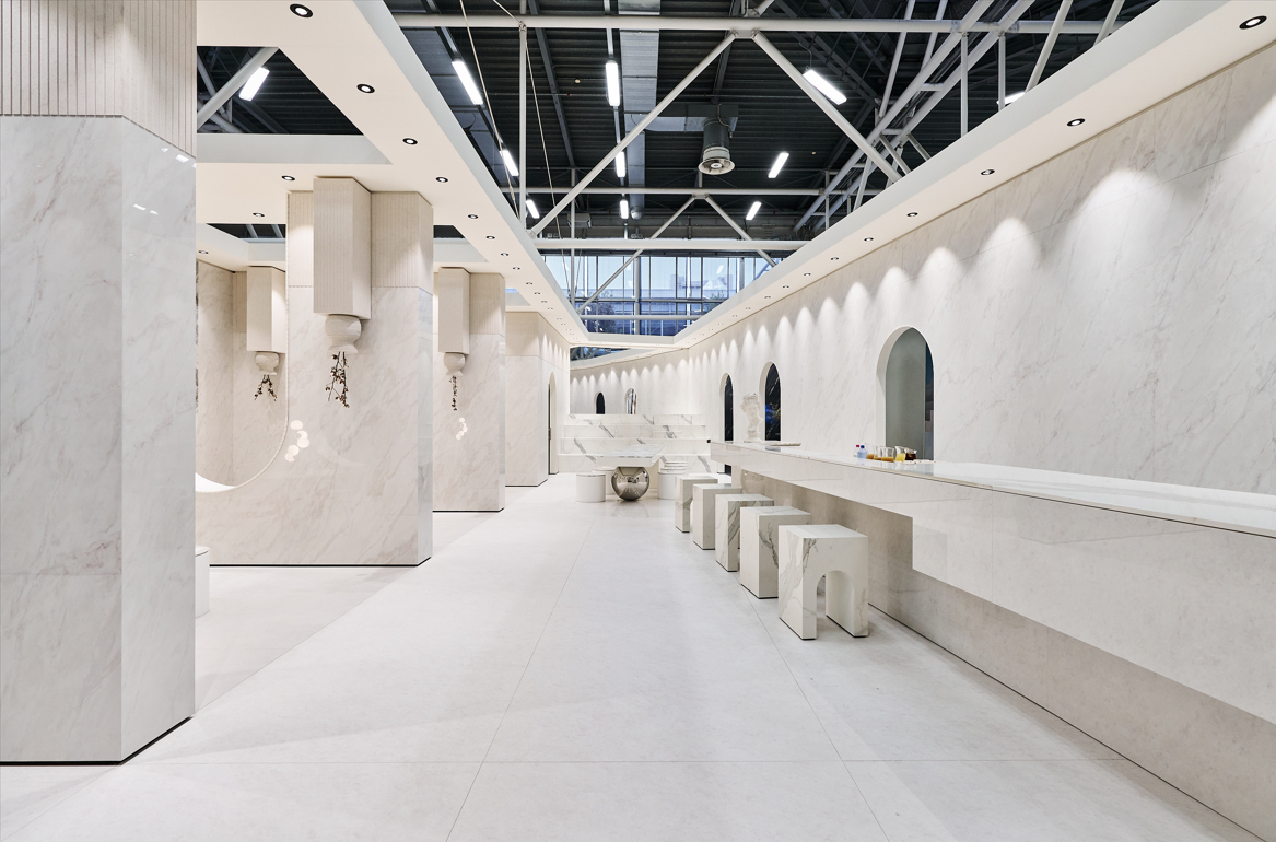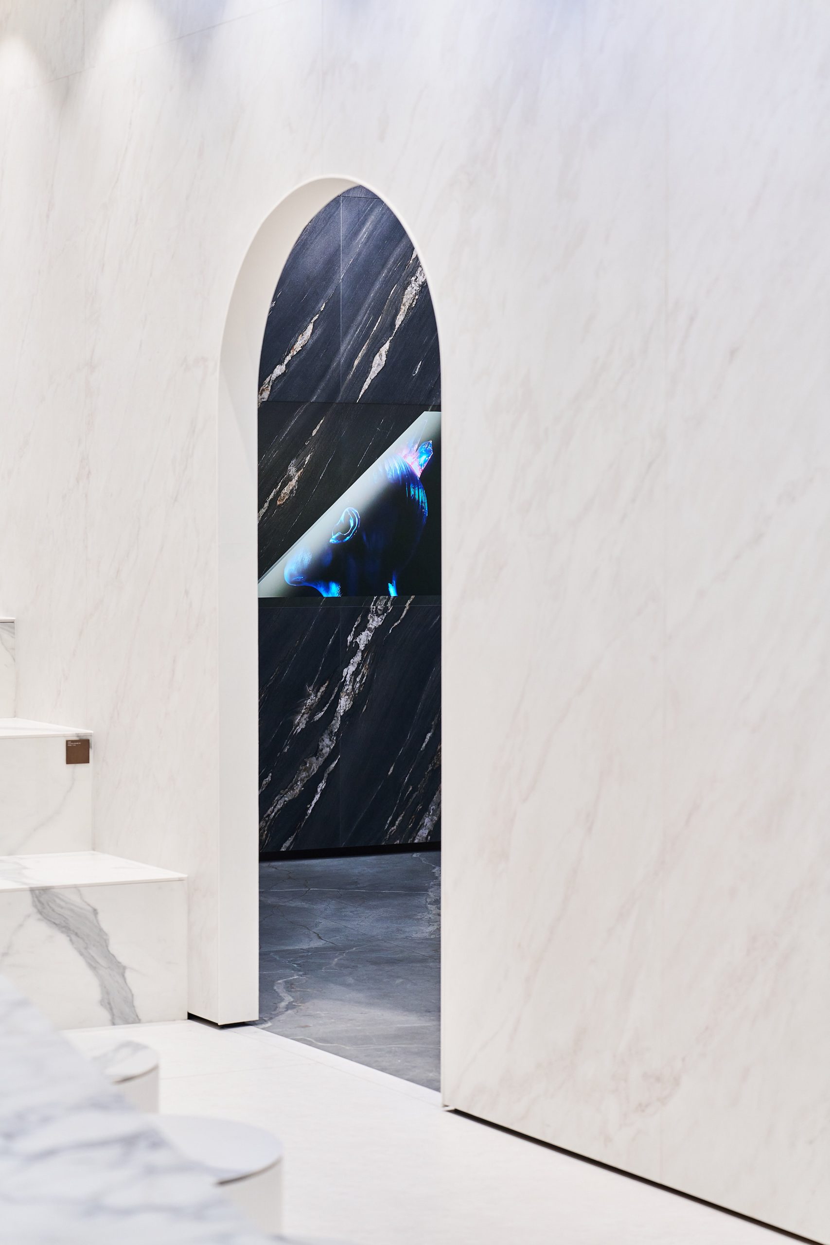 Una “formula magica”, che permette alla materia preziosa di mimetizzarsi, scomporsi e ricomporsi, proprio come espresso nello spazio espositivo studiato Cersaie 2025, che si è presentato come emblema dell’intero processo alchemico: Magnum Opus (= Grande Opera). Un percorso a tappe dove la ceramica è il mezzo attraverso il quale vivere il viaggio "magico" della trasformazione, che passa per il tunnel della metamorfosi, dove la materia si dissolve, supera la porta magica che, come un portale metafisico, conduce nello spazio delle percezioni in cui il design trasforma la realtà in equilibrio di giochi prospettici.