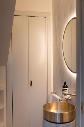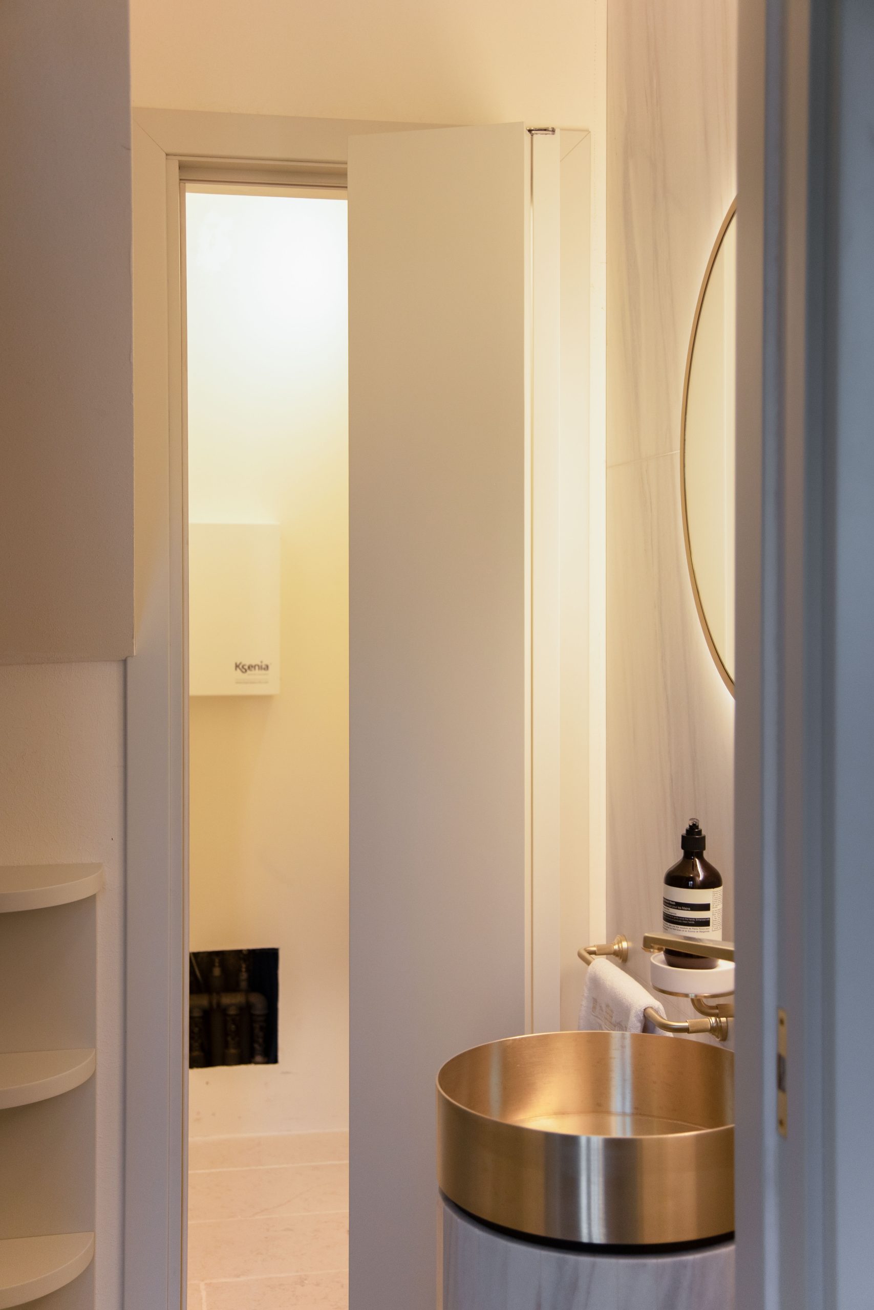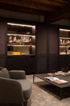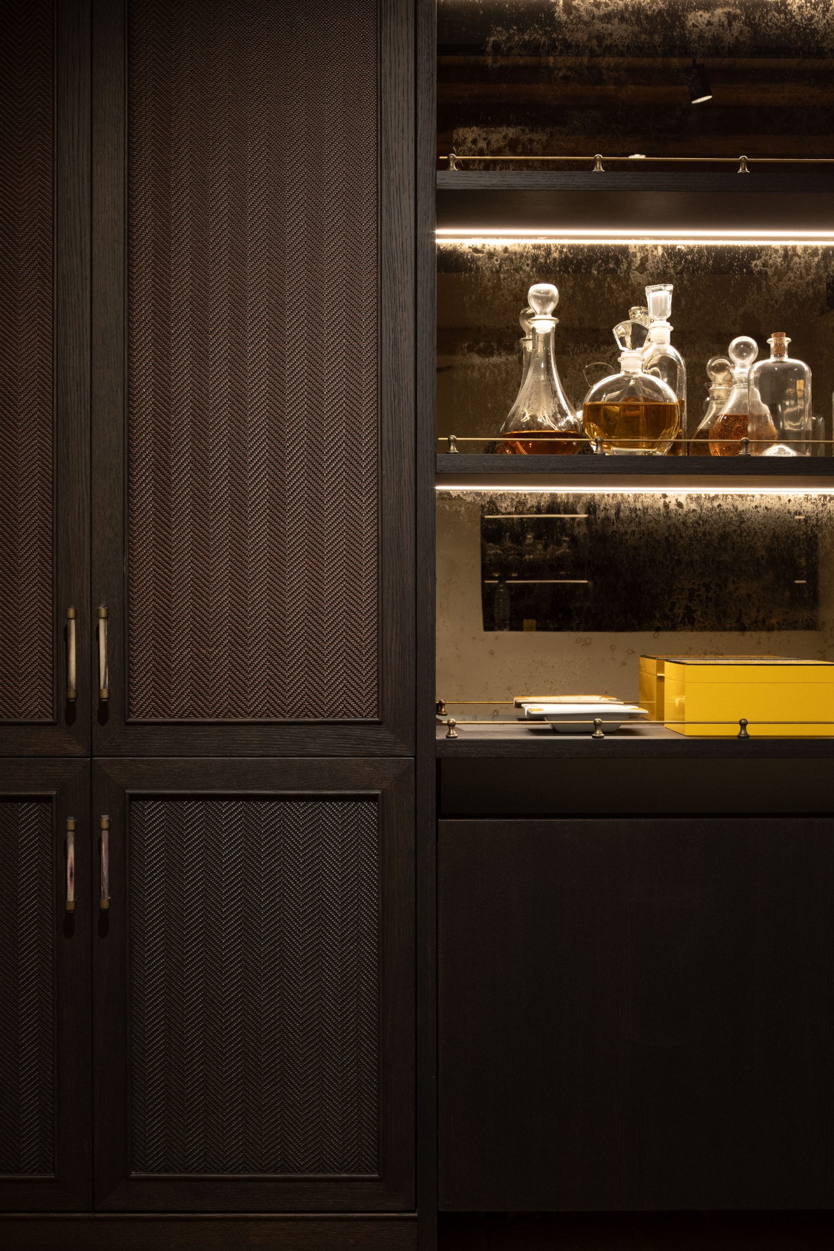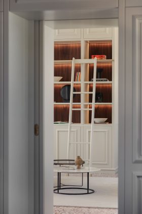 "L’esperienza e la capacità manifatturiera de L’Ottocento ci hanno permesso di pensare a soluzioni di interior completamente sartoriali, ma con lo stesso filo conduttore stilistico", spiegano gli architetti dello studio Russo Sgarbossa. "Gli arredi sono stati progettati in funzione delle esigenze abitative e del desiderio di creare armonia tra l’impianto architettonico esistente e una visione attuale dell’abitare. Le boiserie a tutta altezza sono state realizzate per conferire bellezza e fascino alle stanze ma anche, in alcuni ambienti, per ricreare delle quinte divisorie".