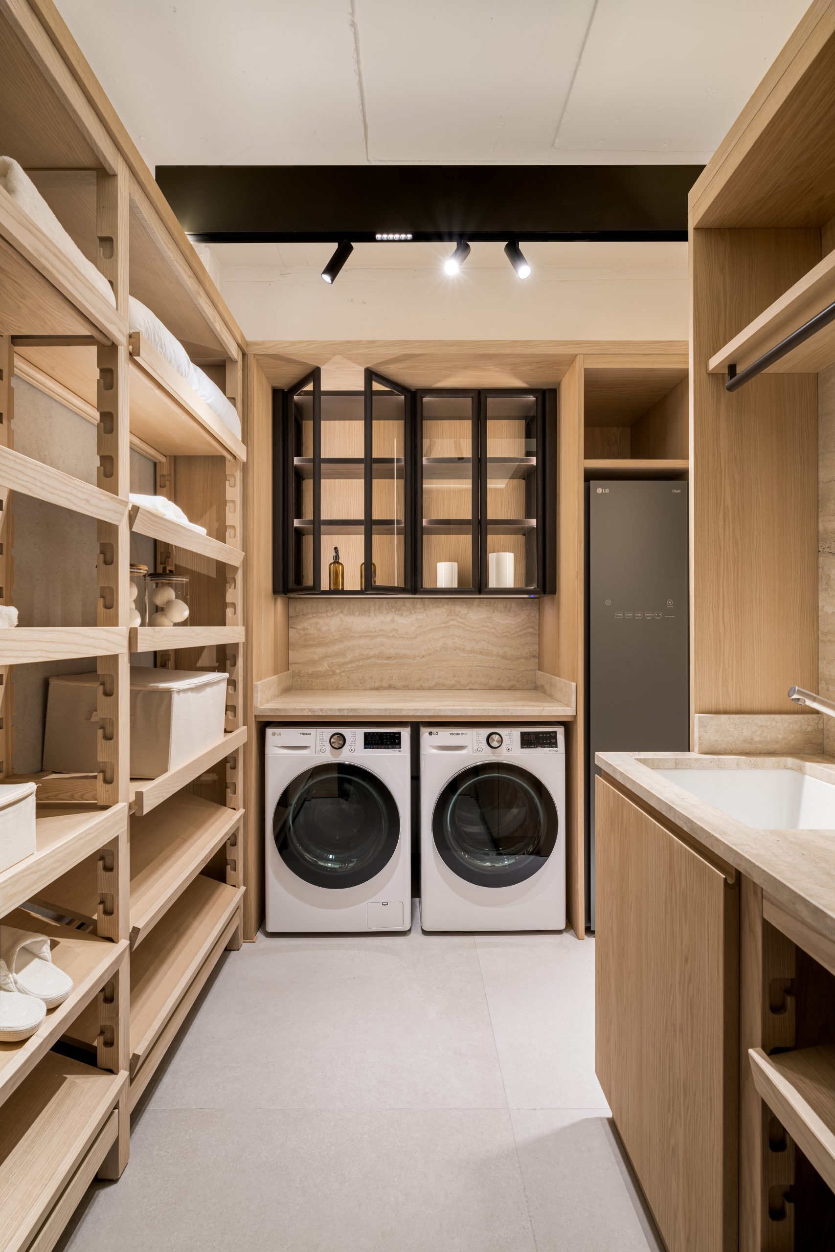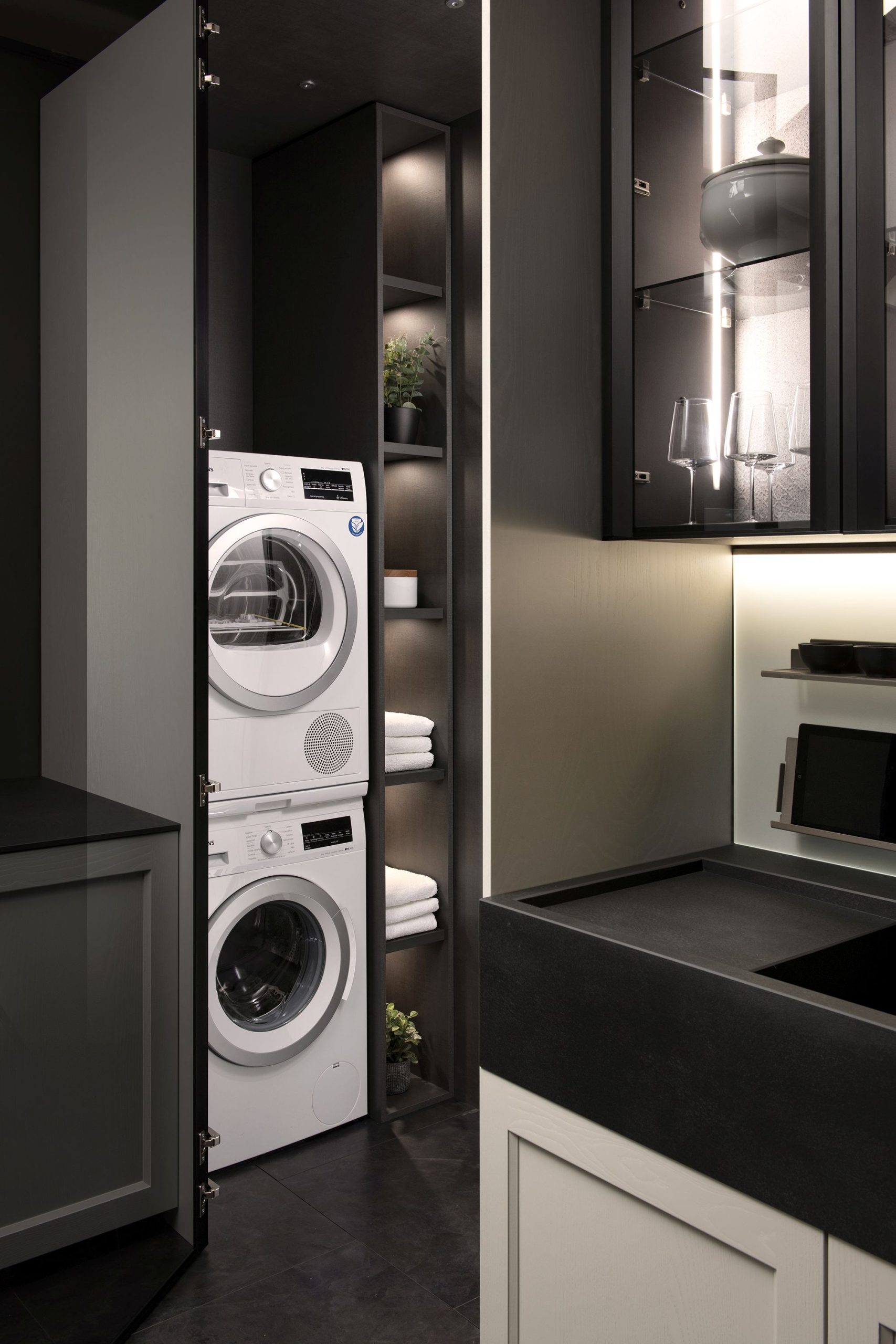 Sono utili, se non indispensabili, le zone laundry e winery, che oggi si possono "magicamente" integrare nell'arredo della cucina. Diversi brand del settore hanno approntato soluzioni specifiche racchiudendo laundry e winery in vani e in mini ambienti ad hoc nascosti e perfettamente attrezzati e attrezzabili a piacere. Praticamente invisibili, cantine vini, lavatrici, asciugartici fanno ormai parte dell'arredo, ma in modo discreto e accessibile