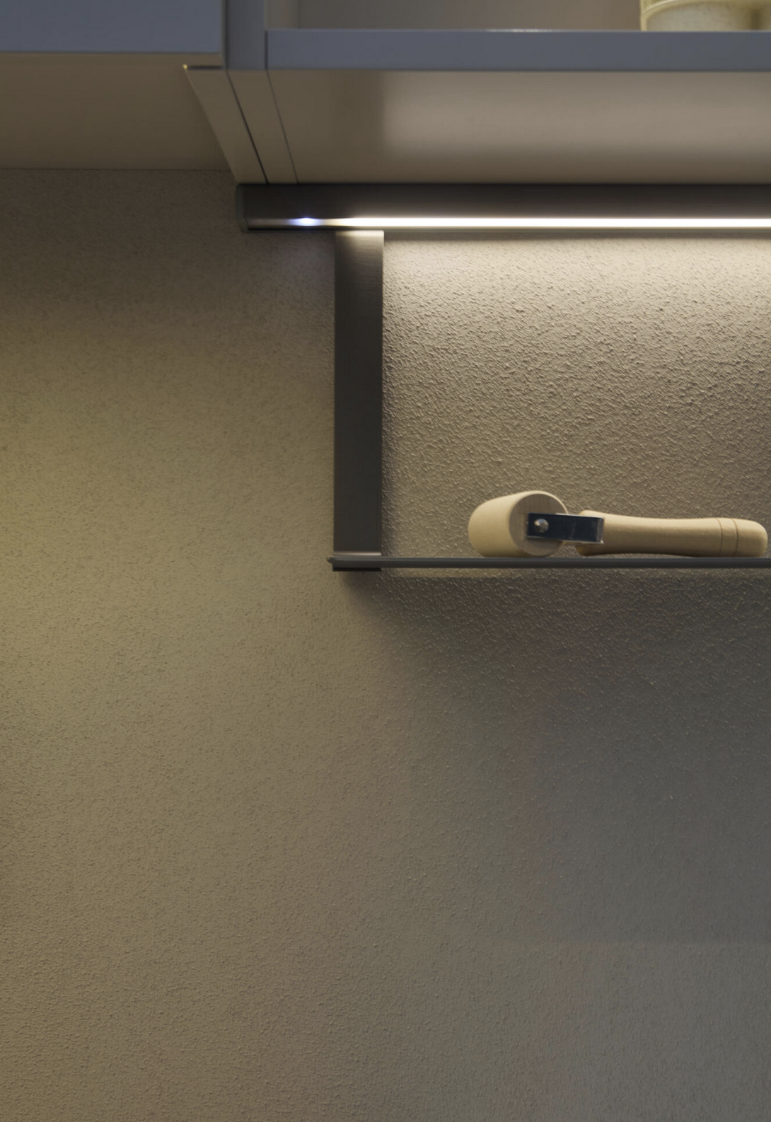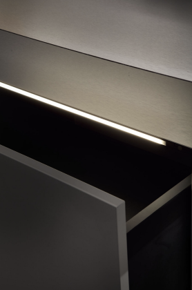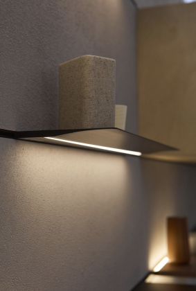Per il design è stata protagonista Hi Line, la boiserie luminosa premiata con l’iF Design Award 2025, che integra profili di luce, mensole e accessori elettrificati. In particolare è stata presentata la nuova mensola wireless per la ricarica degli smartphone e la possibilità di elettrificare mensole anche in legno, oltre che in alluminio. Una soluzione che unisce funzionalità e stile minimal, ideale per cucine e spazi living, dove l’illuminazione diventa elemento d’arredo e di comfort visivo.