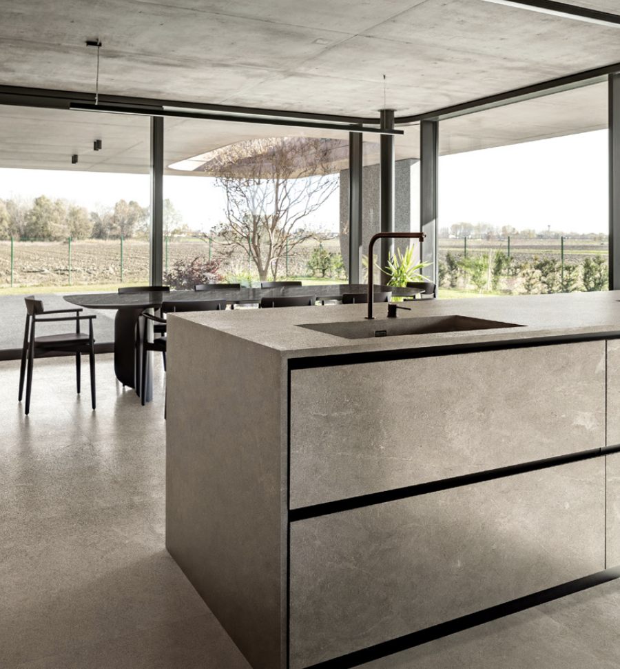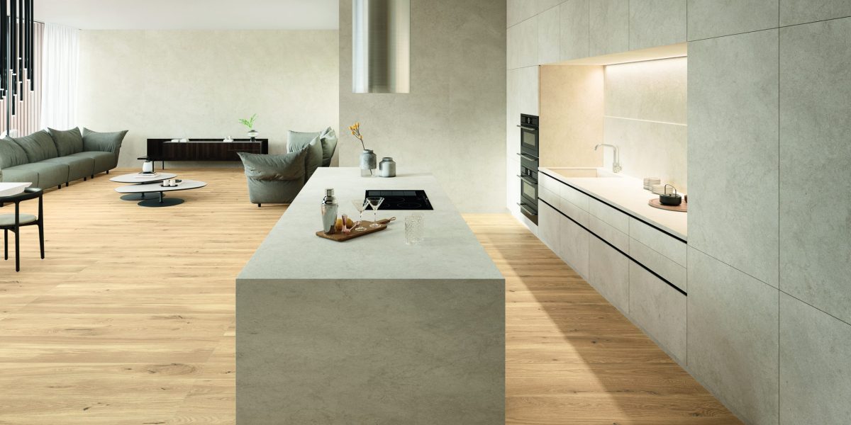 Linee pulite, spessori ridotti e tecnologie d’avanguardia trasformano le superfici in protagoniste silenziose ma decisive del progetto cucina. Lastre che uniscono forza materica e delicatezza estetica danno vita a un total look minimale, dove texture raffinate e contrasti appena accennati esaltano la naturale eleganza dei materiali. Una piccola rassegna di materie kitchen.