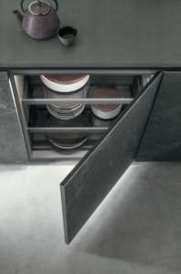 Metropolis è frutto di un processo di ricerca e sviluppo volto a offrire soluzioni ideali per le diverse esigenze di gusto e di spazio, sempre caratterizzate dalla massima efficienza e dalla cura dei particolari. L’inedita versatilità di Metropolis deriva dalla progettazione con Evolution System, il nuovo sistema di Stosa che innova lo stile, la funzionalità e l’interazione con l’ambiente e l’utilizzatore. Lo zoccolo di 8 cm, le basi più alte (81 cm) e profonde, i pensili più slanciati assicurano maggiore capienza, mentre lo spessore di 23 mm potenzia la solidità dell’anta. Nonostante il design compatto, il sistema Metropolis cela infatti una migliore organizzazione degli spazi e potenzia le possibilità compositive dell’ambiente cucina e living.