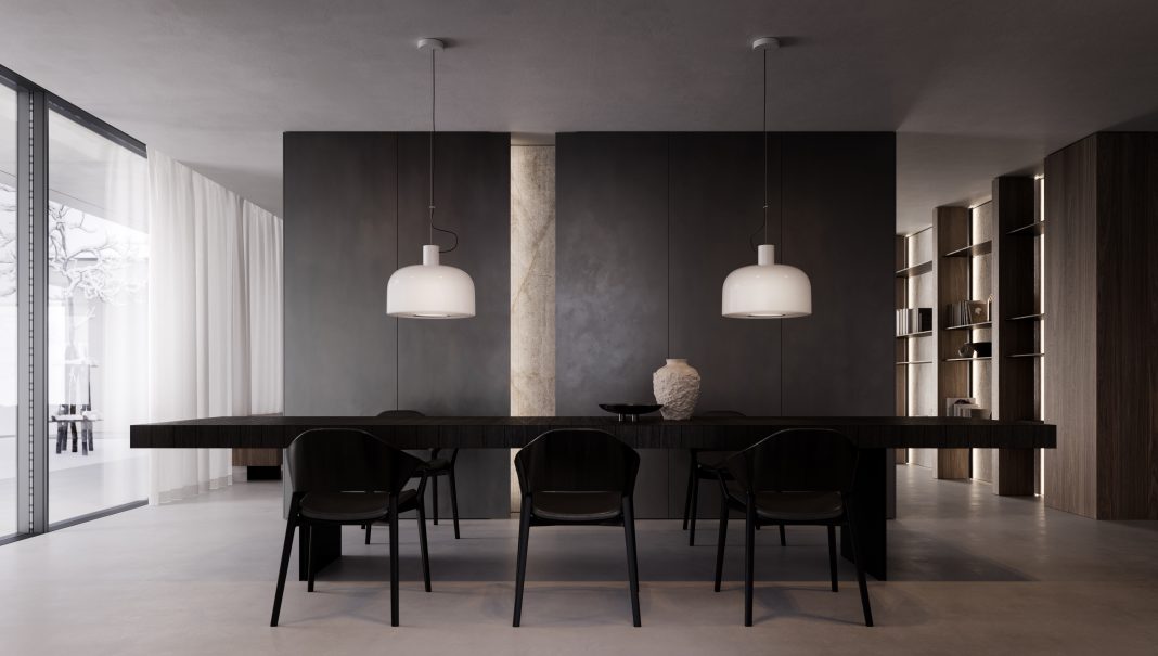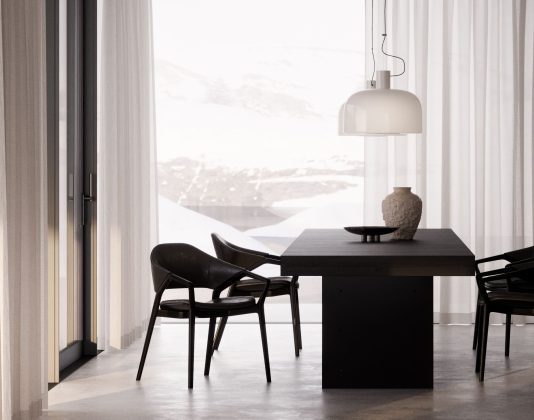 I due nuovi complementi di Modulnova, la libreria Blade Edge e il tavolo Hong Kong, definiscono un ambiente lussuoso ed elegante, in cui si impone al presenza della materia più pregiata. Elegante e discreta, la libreria Blade Edge si inserisce nello spazio con grazia silenziosa. A dare anima al progetto della libreria, lo schienale che abbina il metallo Antracite Dust e il marmo Appennino leggermente arretrato; le luci led in verticale scolpiscono le superfici e accompagnano lo sguardo lungo le intersezioni. Speciale lo schienale in marmo Appennino nella finitura Sense, che appare come una superficie viva e scolpita dal tempo; la lavorazione bocciardata ne esalta la profondità tattile e visiva, rivelando una trama che parla di natura, artigianalità e memoria. Le mensole in metallo, posizionante ad altezze irregolari, definiscono un ritmo tra pieni e vuoti, mentre l’abbinamento con i montanti in legno massello di noce Classic dà forma a un perfetto equilibrio tra rigore e calore.