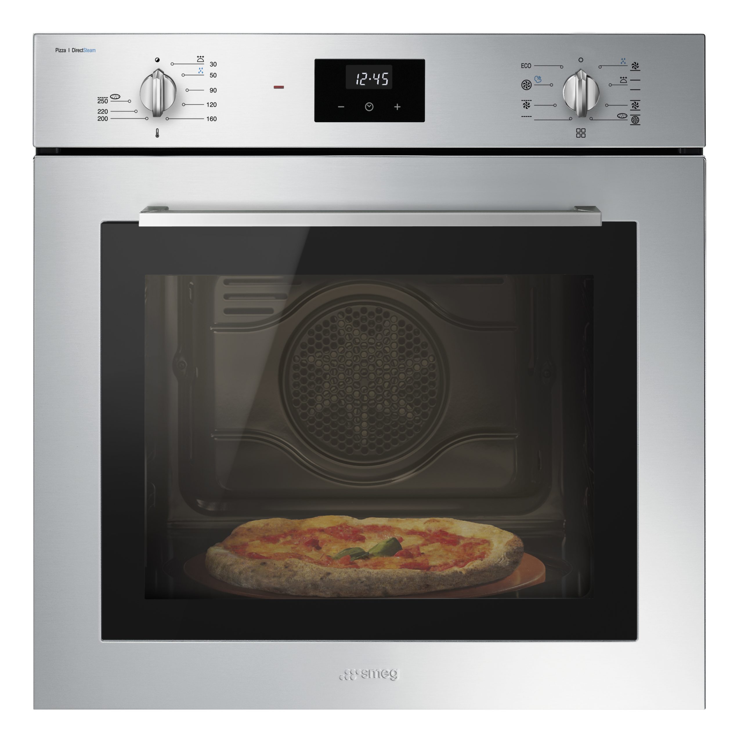 Smeg propone per gli amanti di questo piatto iconico della cucina italiana il forno da incasso SF6400S1PZX, un forno umidificato con sistema pizza integrato che permette di ottenere gli stessi risultati del forno a legna in pochi minuti. Questo modello è equipaggiato con pietra refrattaria per una pizza come quella cotta nel forno a legna (fino a 300 °C, pronta in circa 4 minuti), offre funzione vapore per lievitazione e cotture umidificate, ha una pulizia semplificata grazie allo smalto pirolitico e propone 9 funzioni di cottura, tra cui anche la lievitazione. La sua capacità è di 65 litri e i tempi di preriscaldamento sono ridotti fino al 50%.