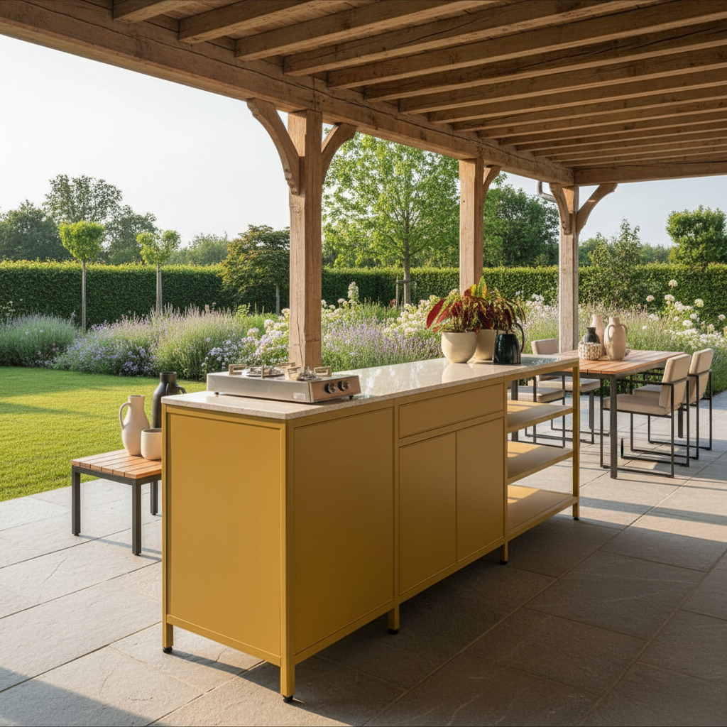 Il versatile programma di strutture e isole in alluminio Project2 realizzato da Scilm permette di creare ogni tipologia di mobile per la cucina e il living anche outdoor