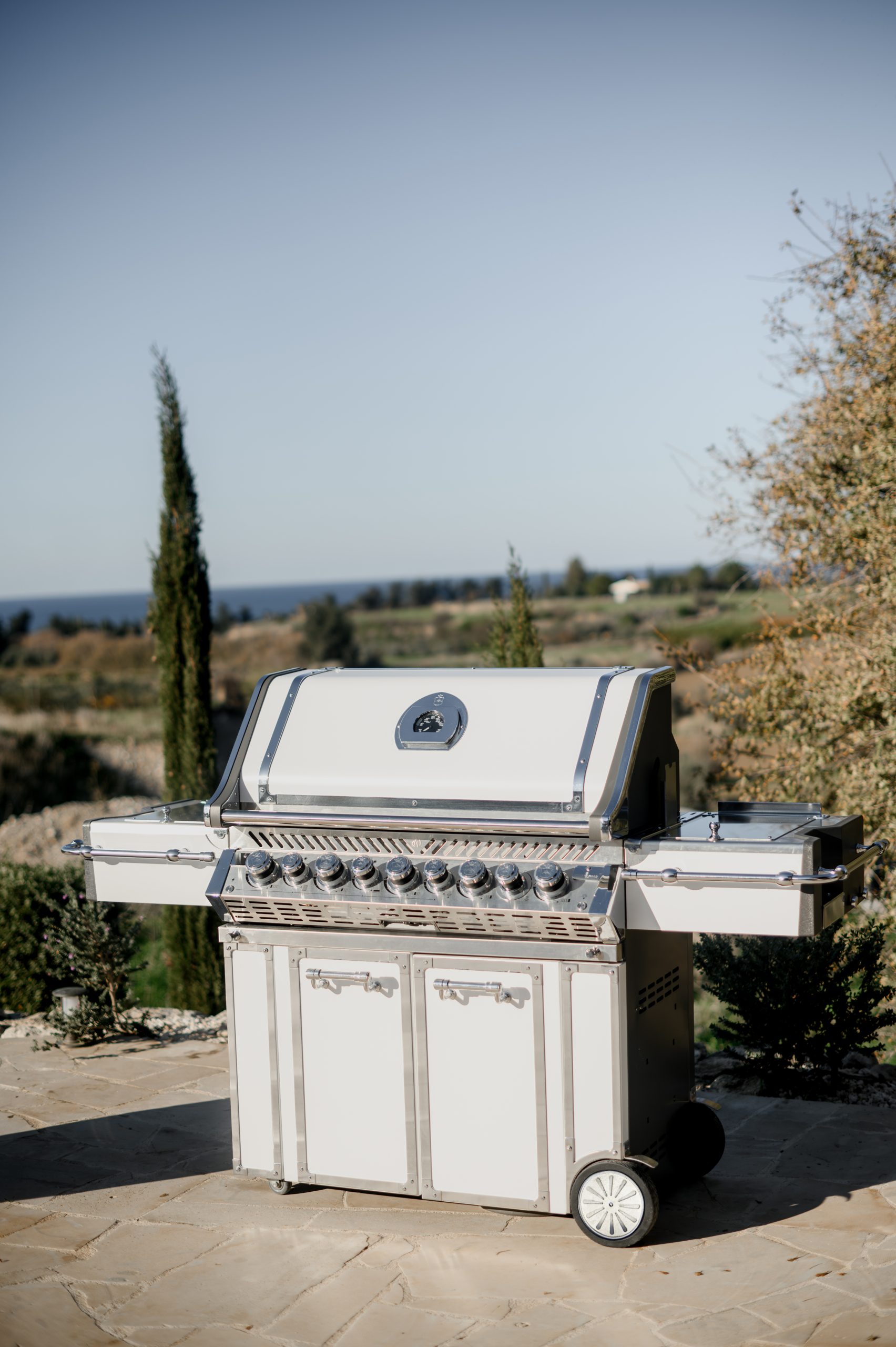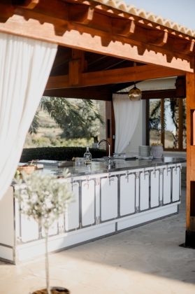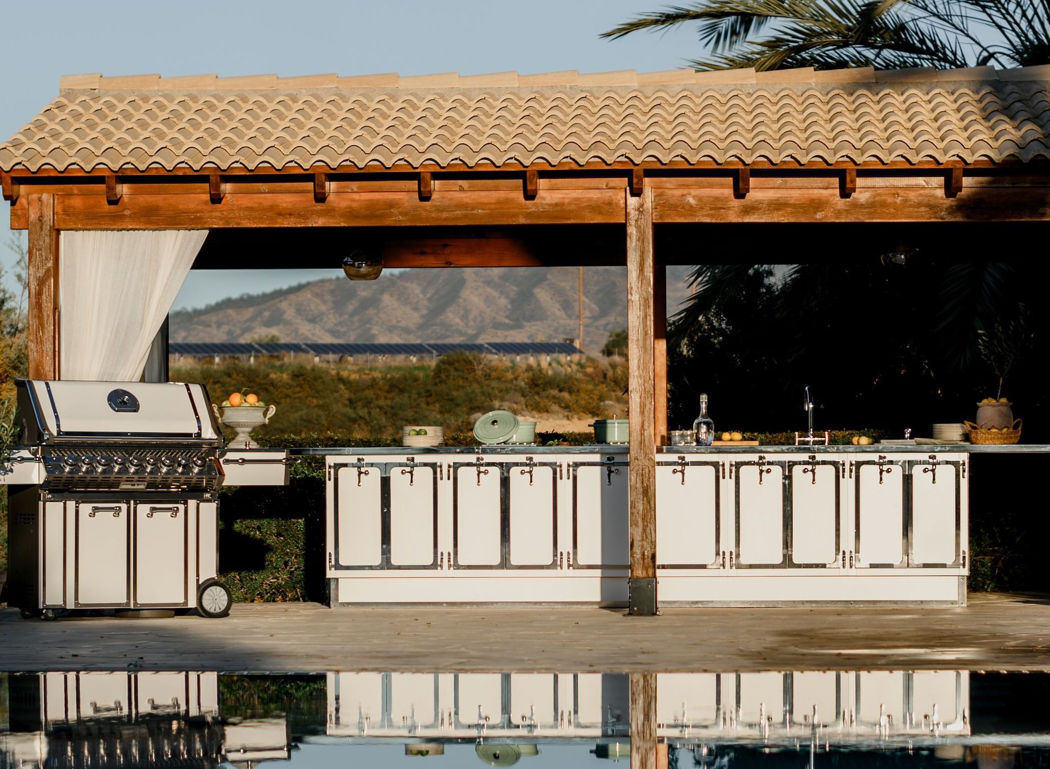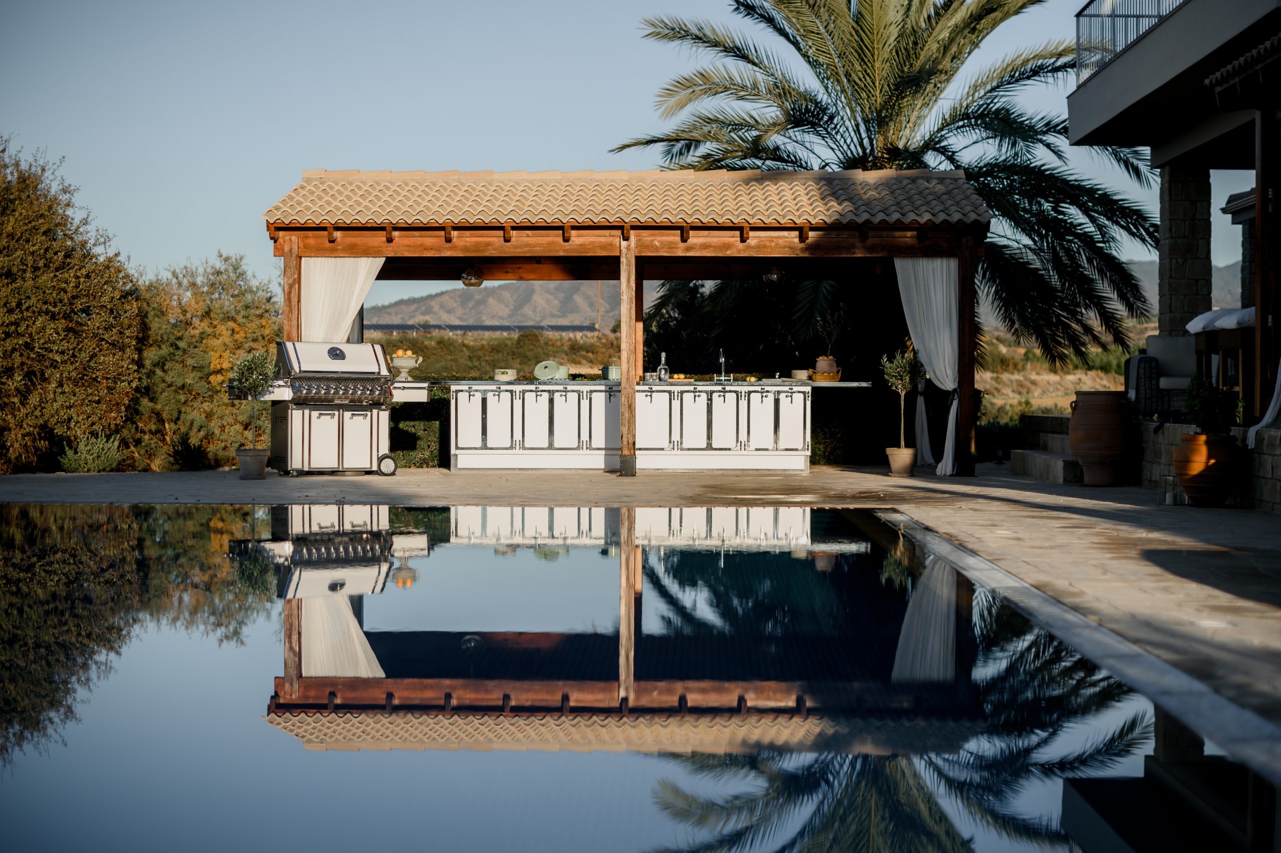 E' in una piccola oasi di pace, a Cipro, l'area in cui si colloca una elegante villa, circondata da un grande spazio verde e resa unica dalla vista sul mare. E' qui che, sotto la struttura del pergolato in legno naturale del patio affacciato sulla piscina, i proprietari hanno sistemato la cucina outdoor, una composizione di ben 5 metri di lunghezza realizzata su misura da Officine Gullo. Si tratta di un progetto speciale, che rappresenta la sintesi ideale tra design, tecnologia avanzata e artigianalità italiana e si avvale degli strumenti di cottura più avanzati ed efficienti. Questa cucina su misura di tipo professionale - come lo sono le cucine del brand destinate agli interni - è stata inoltre implementata con il barbecue freestanding, fornito di ruote e di due "ali" laterali funzionali.