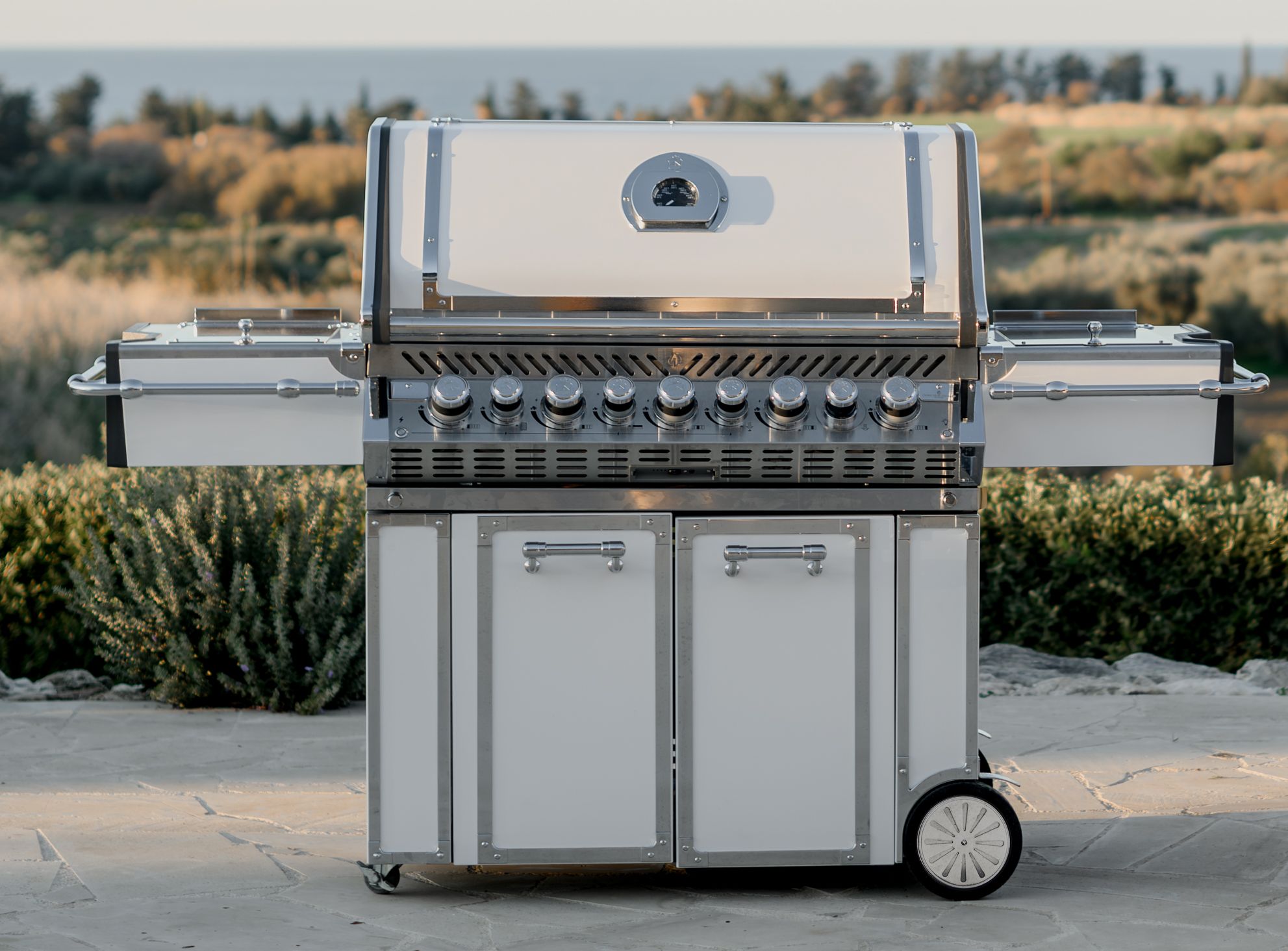 Il barbecue è equipaggiato con otto potenti bruciatori da 31 kW e griglie in acciaio inox da 9,5 mm di spessore, e garantisce prestazioni di altissimo livello.