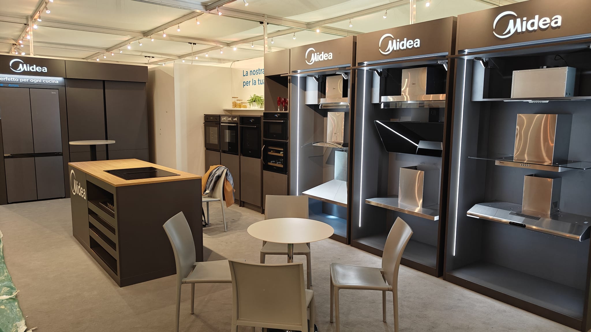 Starting with the "first time," it was a surprise to find the stand of the Chinese giant Midea, which has decided to officially launch its brand into the built-in market right here in Pordenone. This range will be sold only through specialized distributors and is different from the one already marketed exclusively by Mondo Convenienza.