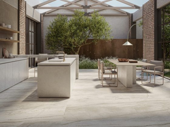 For Italgraniti's debut in the world of large slabs, with the Italstone brand, the focus was on its proprietary RealUp® technology, which guarantees ultra-realistic textures, and on the innovative 230-meter-long cooking oven, which, thanks to extremely precise thermal control, makes the slabs more resistant and easier and safer to work with, even with rounded corners.