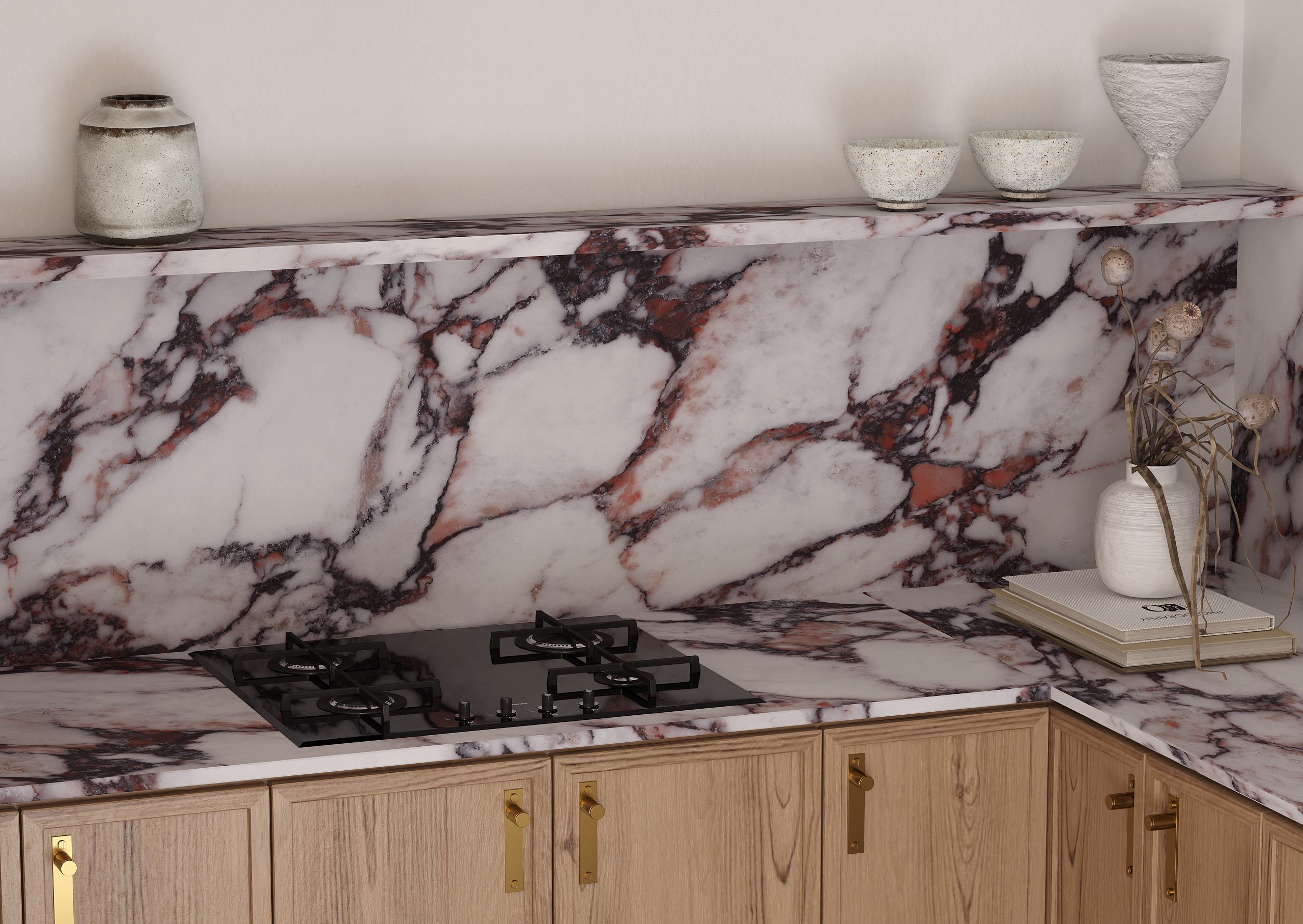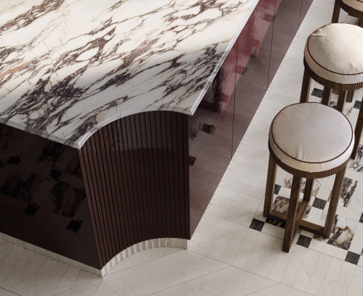 Even in the world of ceramics, research into through-graining and a new material tactility has produced increasingly lifelike results. Examples include the faithful reproduction of Sapienstone's Fior di Viola marble, highlighted by the workmanship of the countertop presented at Sicam, or the Neolith Iconic Design project debuting in Italy with Neolith Victoria, a surface created using 3D printing technology and featuring a through-grain design inspired by Brazilian marble.
