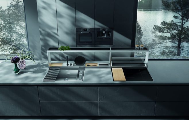 We speak of a cominig back for Barazza, presenting the high-impact, functionally intelligent AH.B system that transforms the worktop into a fluid, modular space. The project is by Alessandro Andreucci and Christian Hoisl, collaborating for the first time with the steel-working specialist.