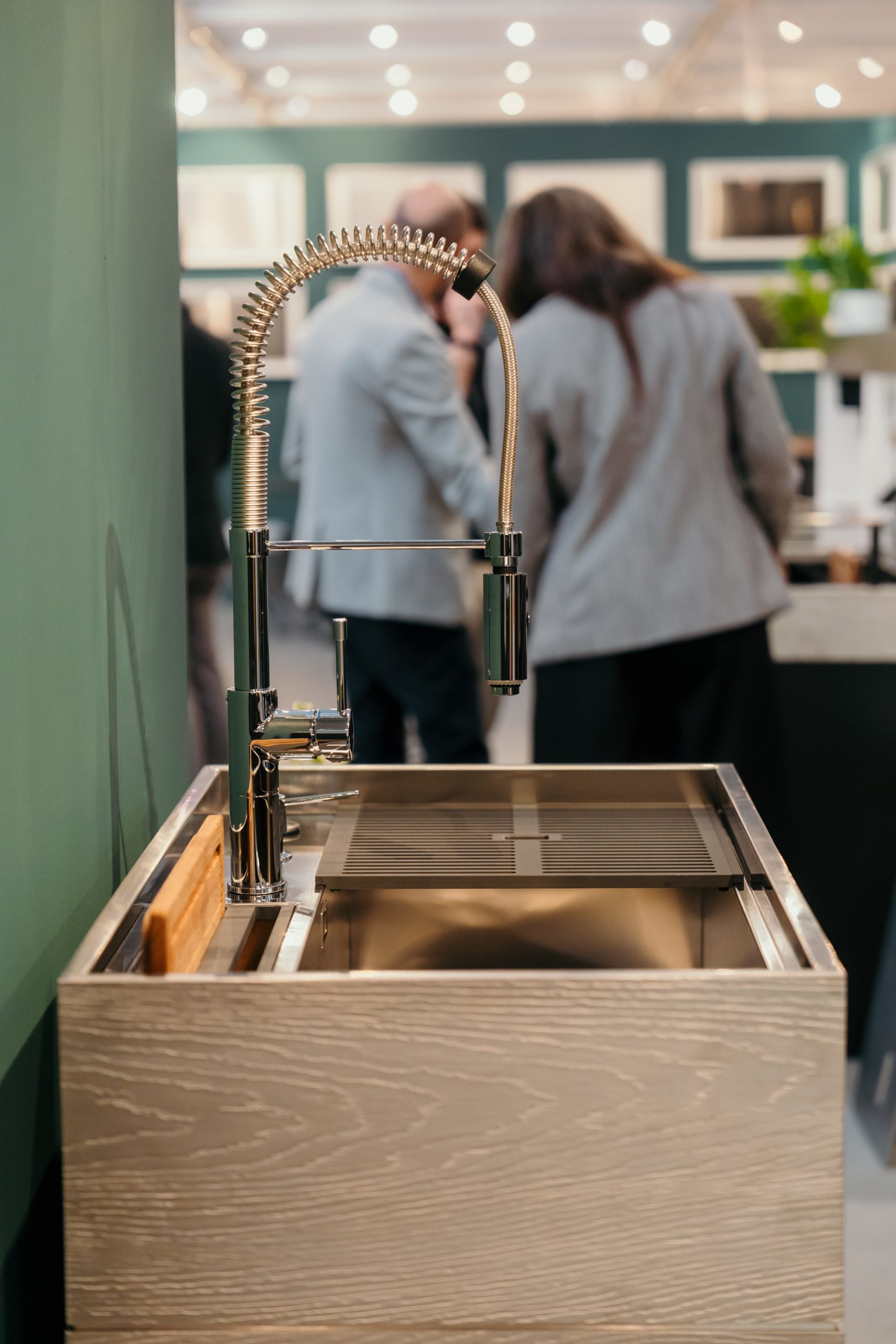 With a business originating in the sink world thanks in part to research into patented materials such as Granitek and Keratek, Elleci paid homage to this research with the Materials Wall installation, but also reaffirmed the important role of the appliance. For the first time, it presented technological solutions that enrich the sink area with functionality, with the Elleci Pure water treatment systems and filter mixers and the Elleci Zero food waste disposer for organic waste disposal.
