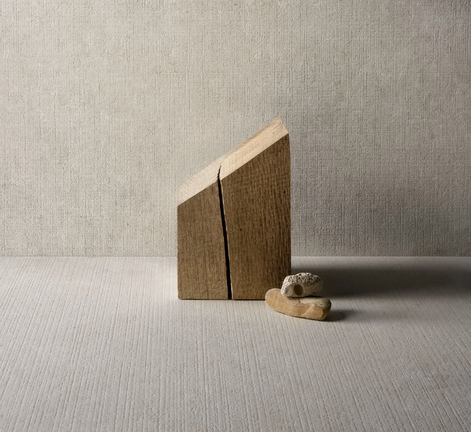 For Infinity Surface's Arkèon collection, developed in collaboration with Giuseppe Bavuso, the natural references are fossils, stone, and plaster, and the focus is on textures that enhance their materiality.
