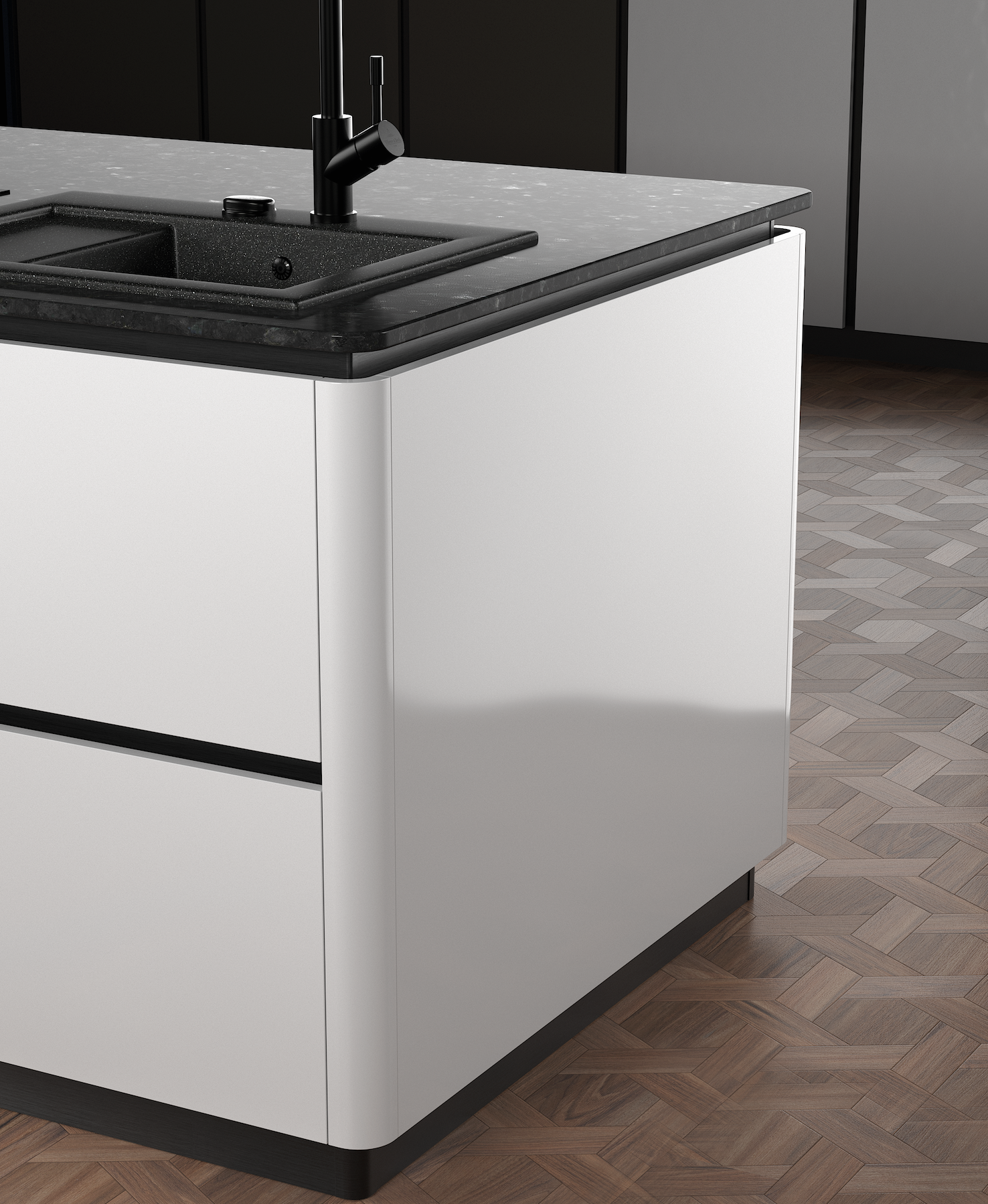 Rounding is another must-have that has caught everyone's attention. It took Baido's expertise in processing to make it a success in transforming laminate and to offer the same rounded finish for the door that opens the corner.