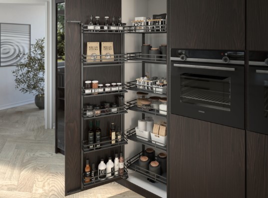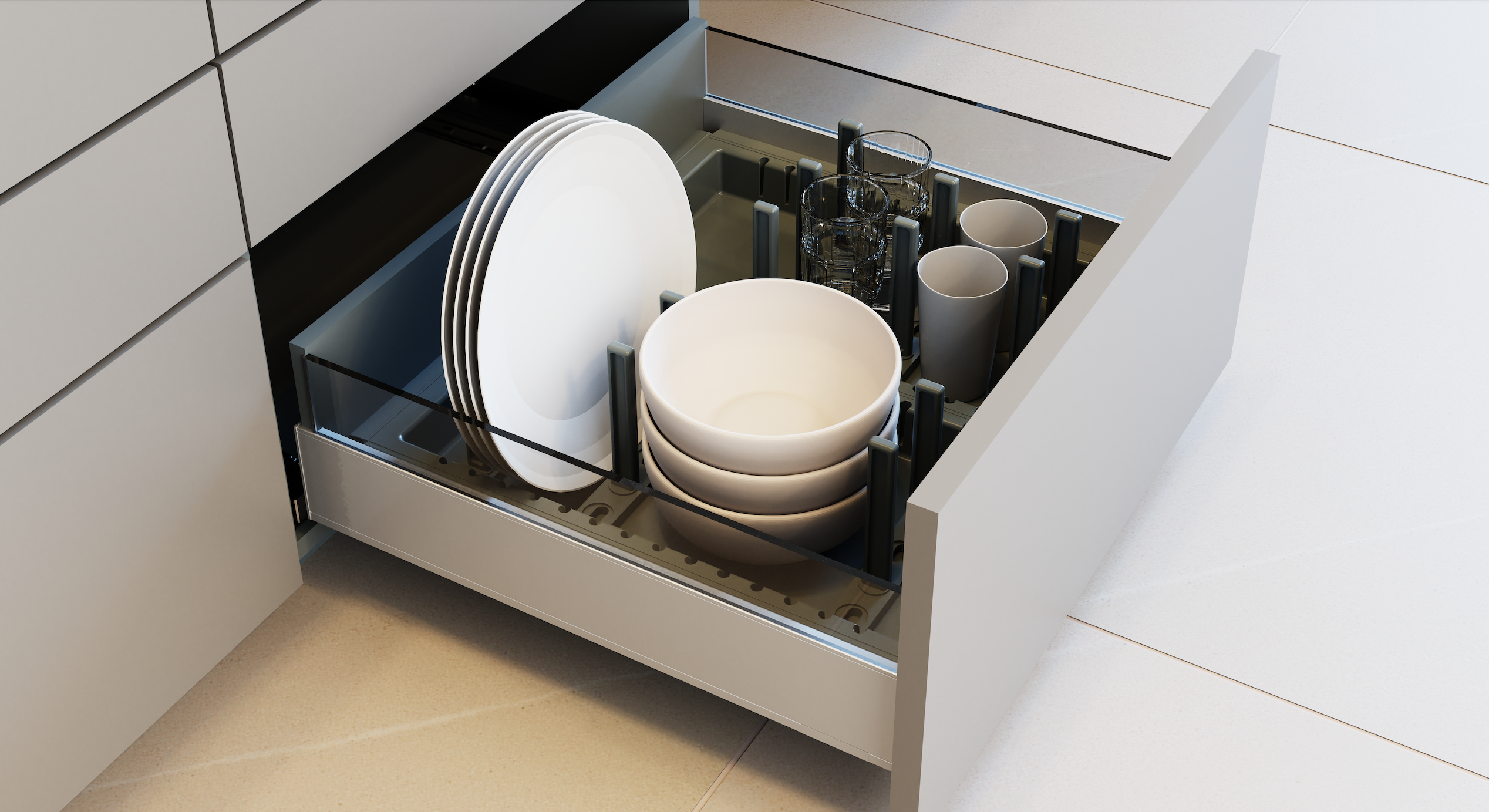 A solution that facilitates order and functionality within deep drawers. Wizard M, displayed at Sicam, integrates seamlessly into any type of drawer, allowing you to perfectly organize plates, bowls, glasses, and pots and pans in a practical and safe way. The trays are fully adjustable, and the high-quality materials guarantee strength and durability.